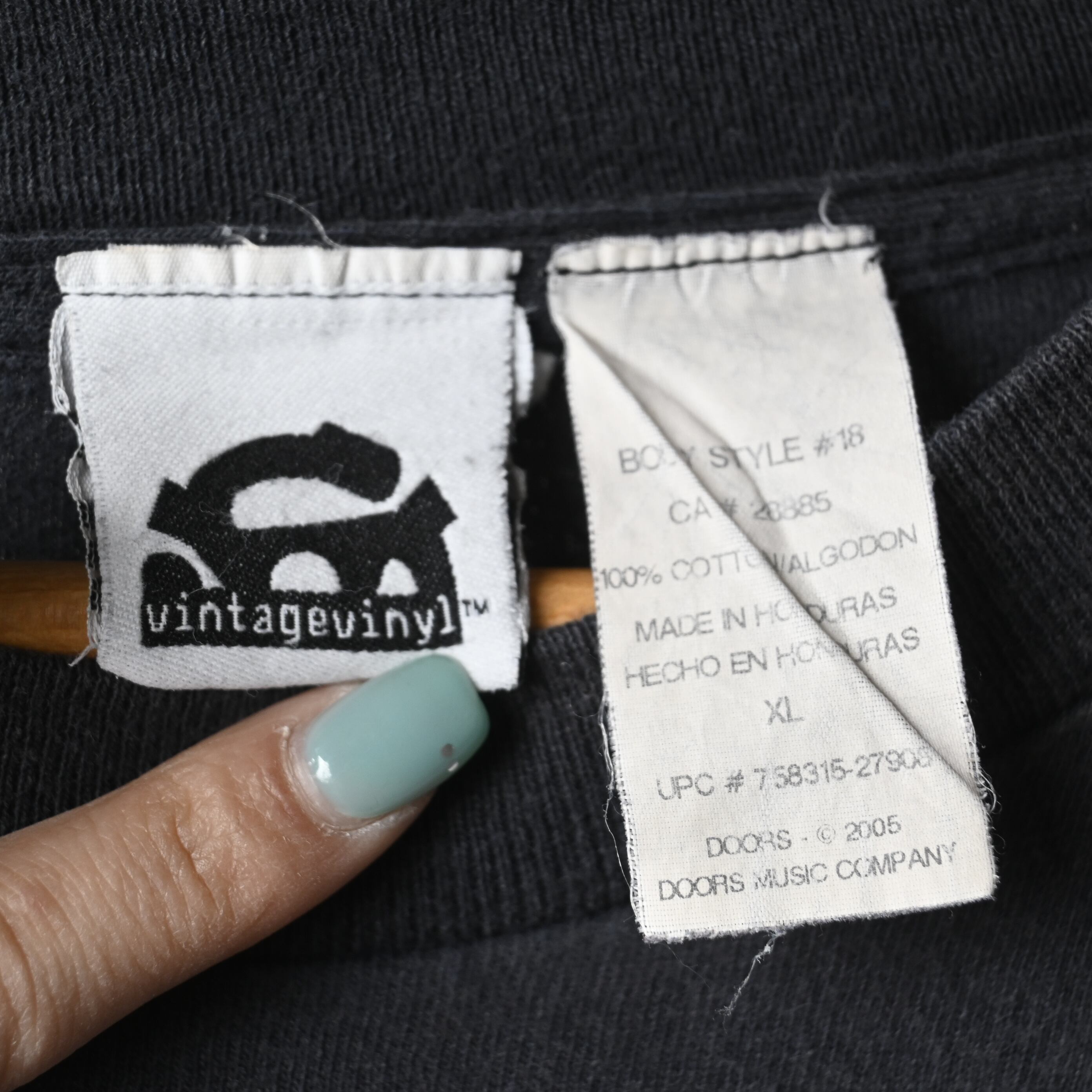 [ XL ] Vintage Vinyl Honduras製 "The Doors" Flock Print Band T-shirt , Black / ヴィンテージヴァイナル ザ・ドアーズ フロッキープリント バンドTシャツ ブラック