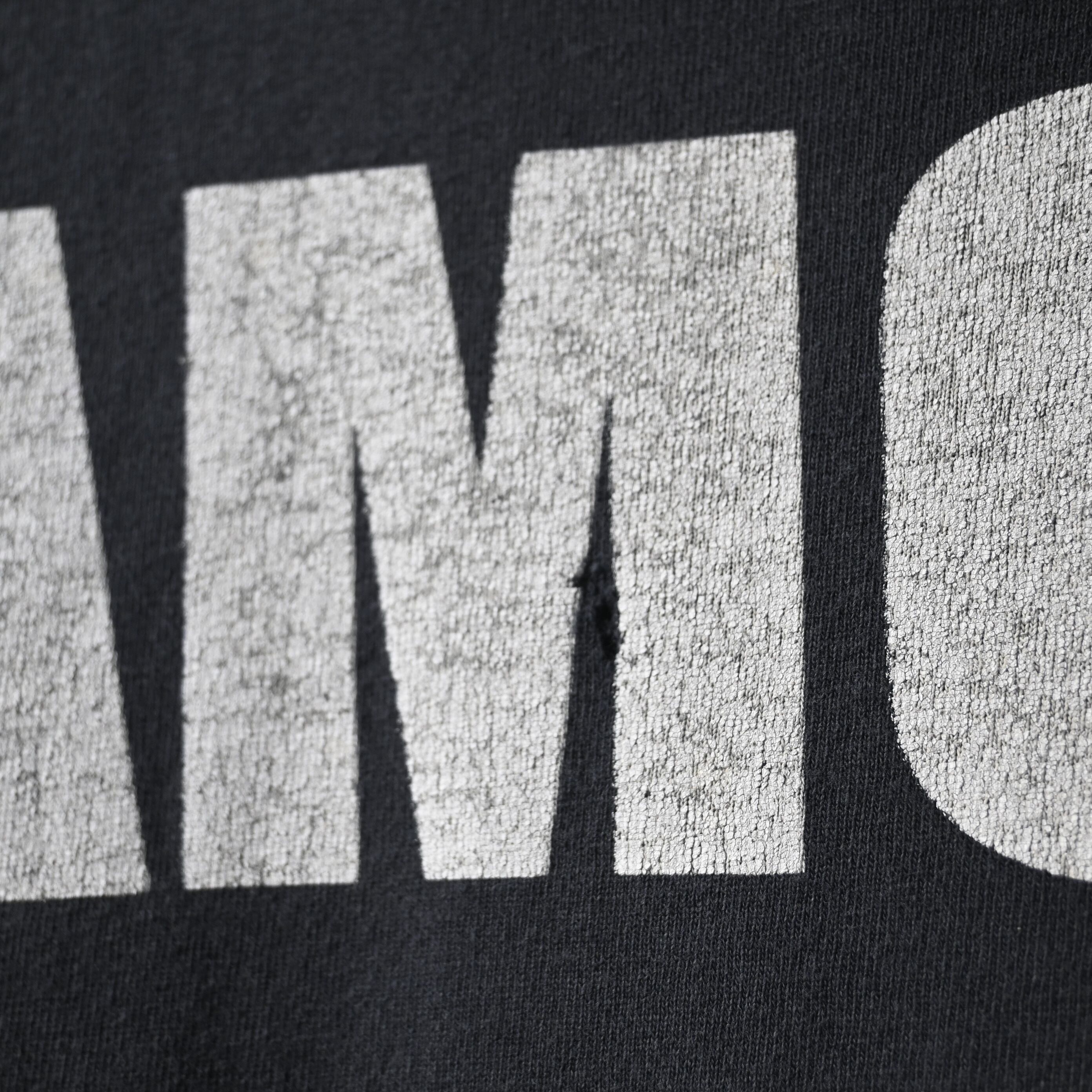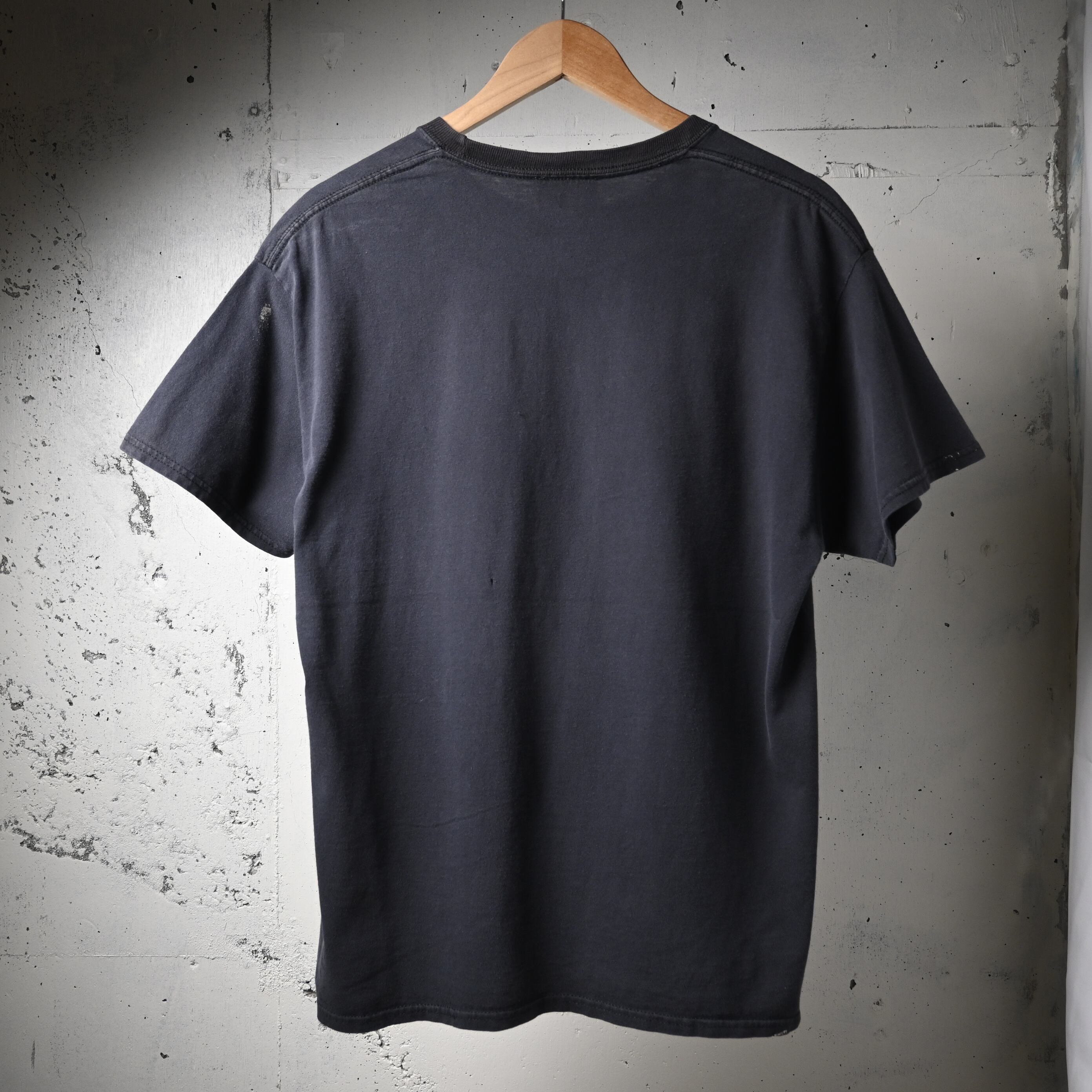 2008コピーライト入りで、程よくフェードしたブラックにプリントの細かなクラックも出ており、新品にはない雰囲気が出ています。デニムや軍パンはもちろん、ジャケットのインナーにも取り入れやすい一枚です。