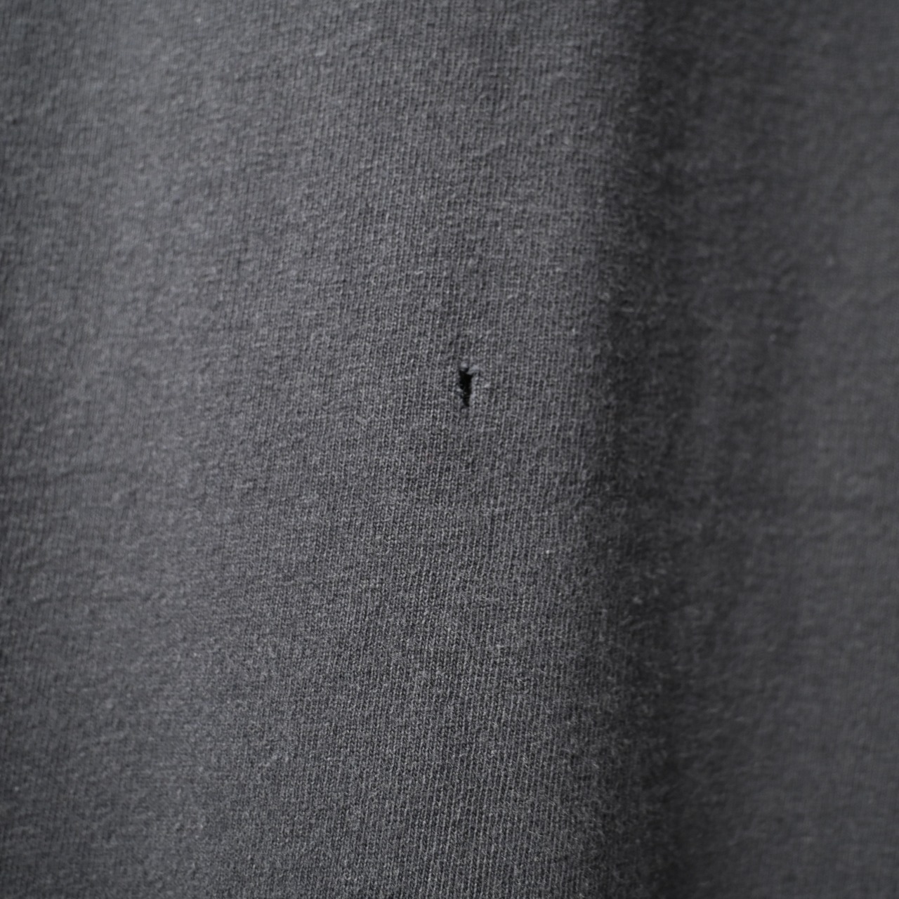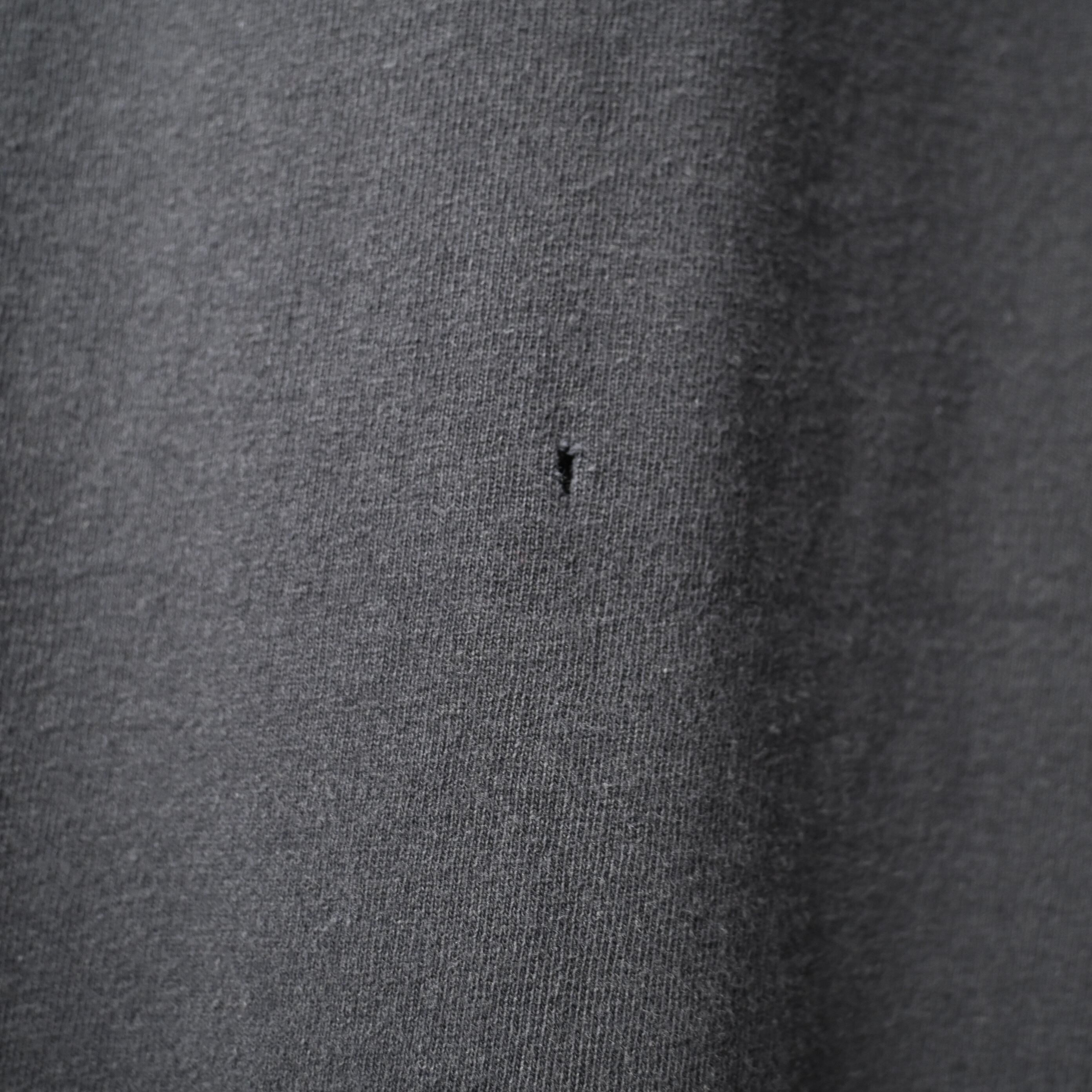 全体に着用感とフェードがあります。プリントにクラック,プリント付近には小さなダメージ、ペンキ汚れあり。背面中央付近に小穴、肩付近に擦れがありますが、着用に大きく支障のあるダメージではなく、古着らしい雰囲気として楽しめるコンディションです。