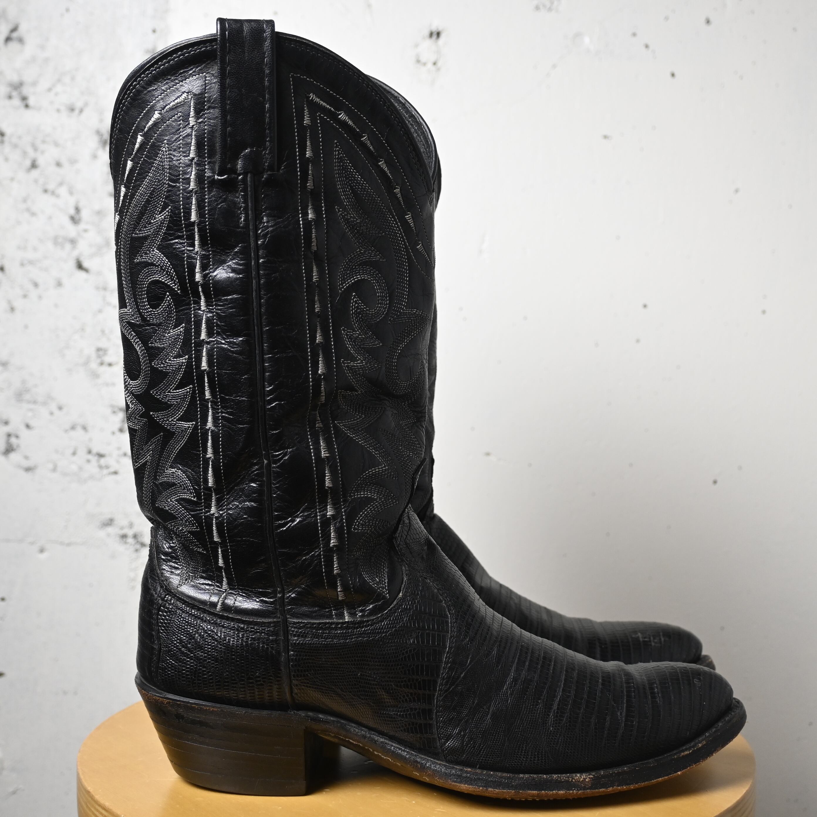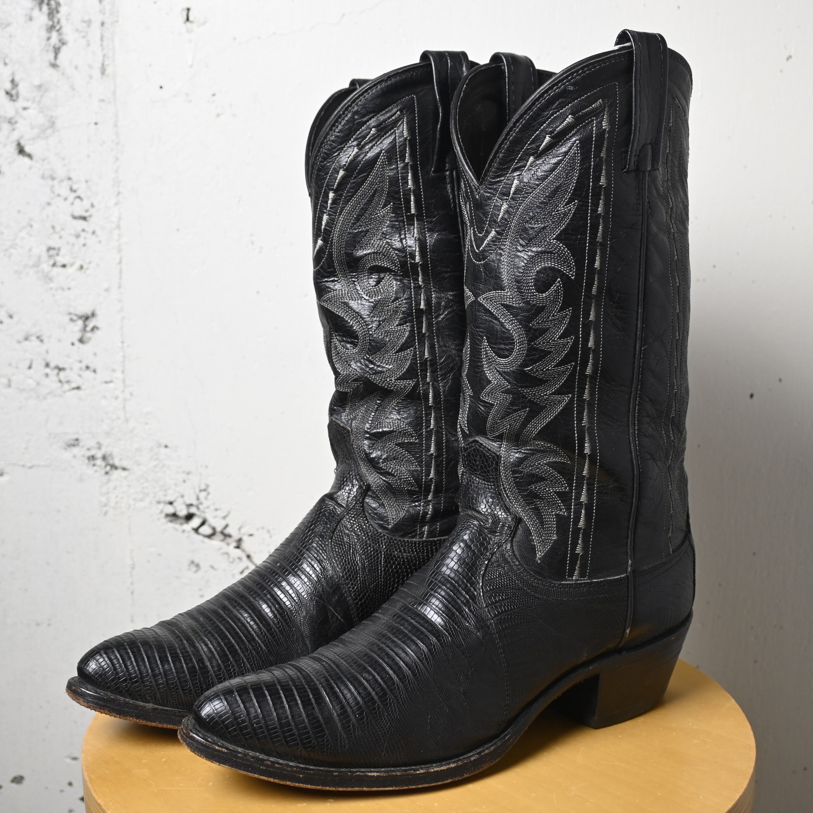 [ 8 ] DAN POST Vintage Lizard Western Boots , Black