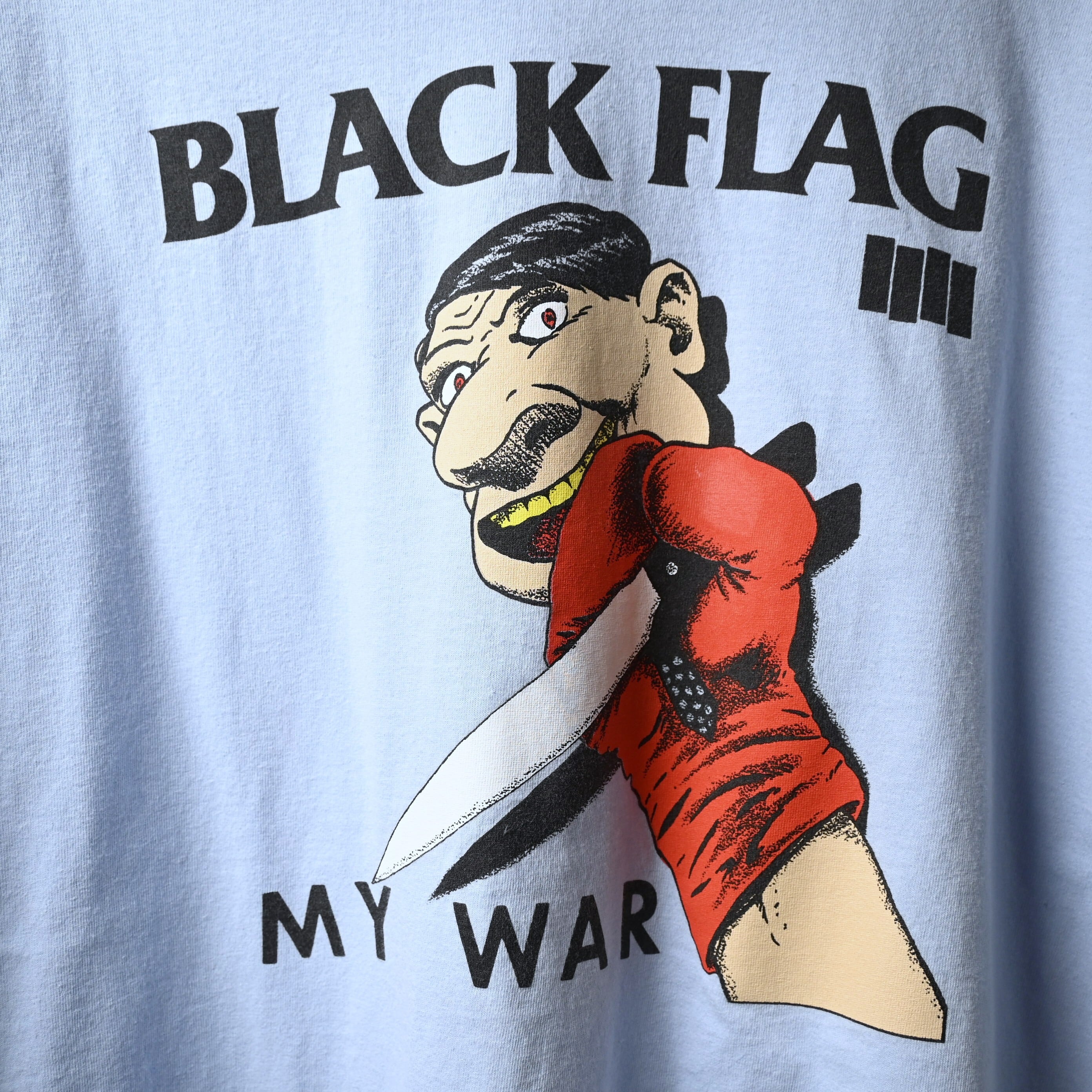 フロントには1984年発表の代表作 My War を象徴するアートワークが大きくプリントされており、BLACK FLAGのアイコンでもある4本バーのロゴもしっかり入った一枚です。鋭さのあるグラフィックと独特な不穏さが、このバンドらしい空気をそのまま表現しています。