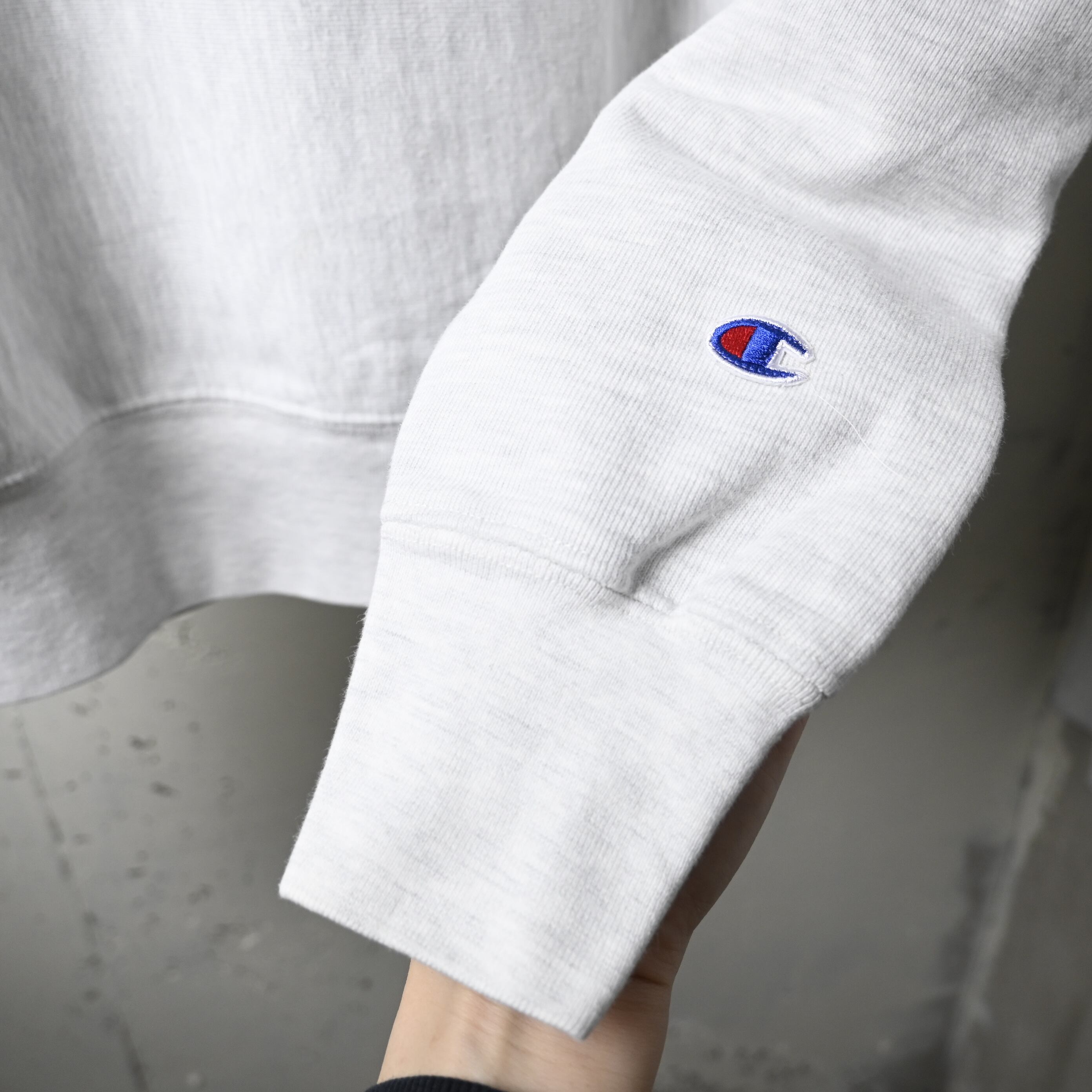 袖にはChampionロゴ刺繍入り。
