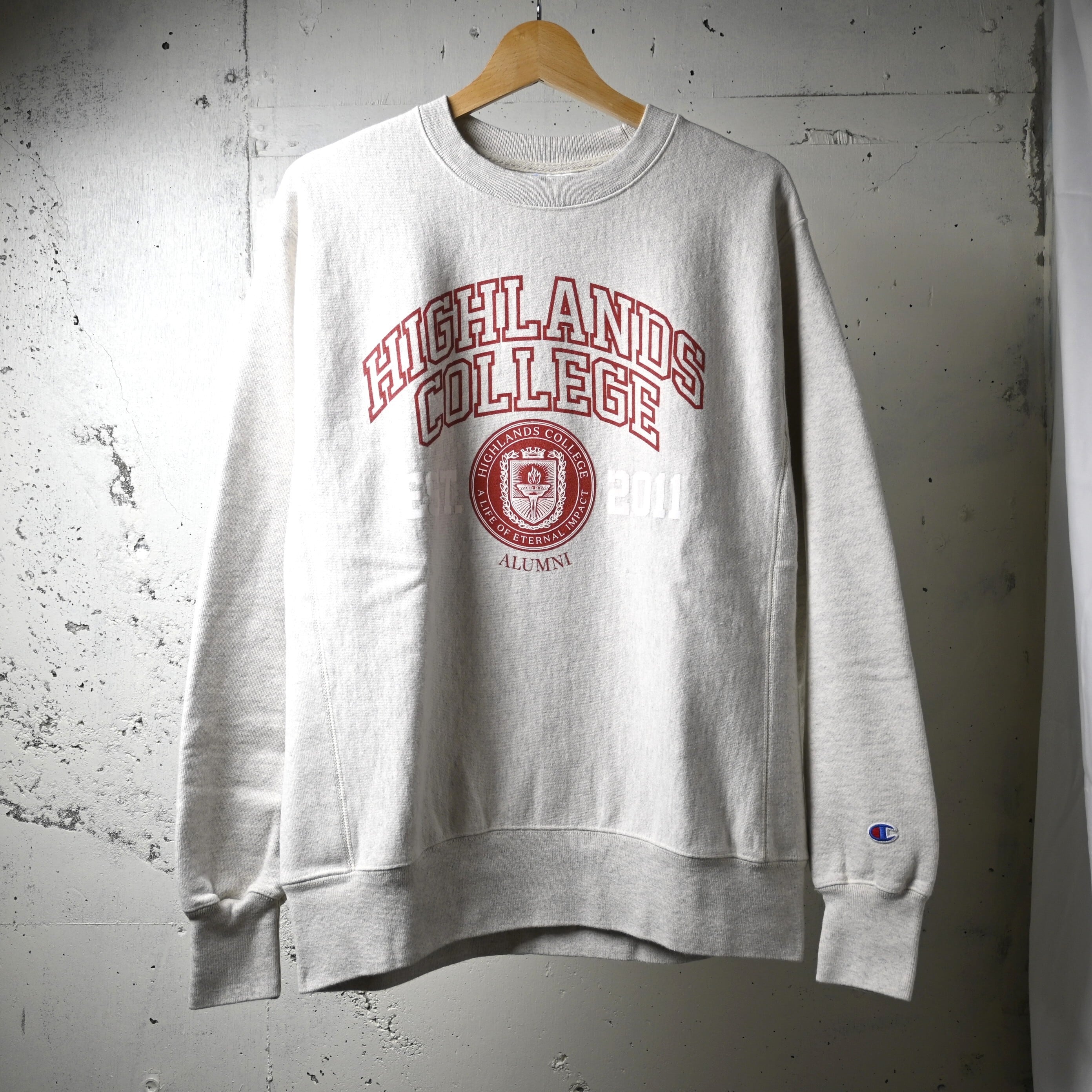 [ M ] Champion 00s リバースウィーブ スウェット グレー "HIGHLANDS COLLEGE" カレッジプリント チャンピオン Reverse Weave