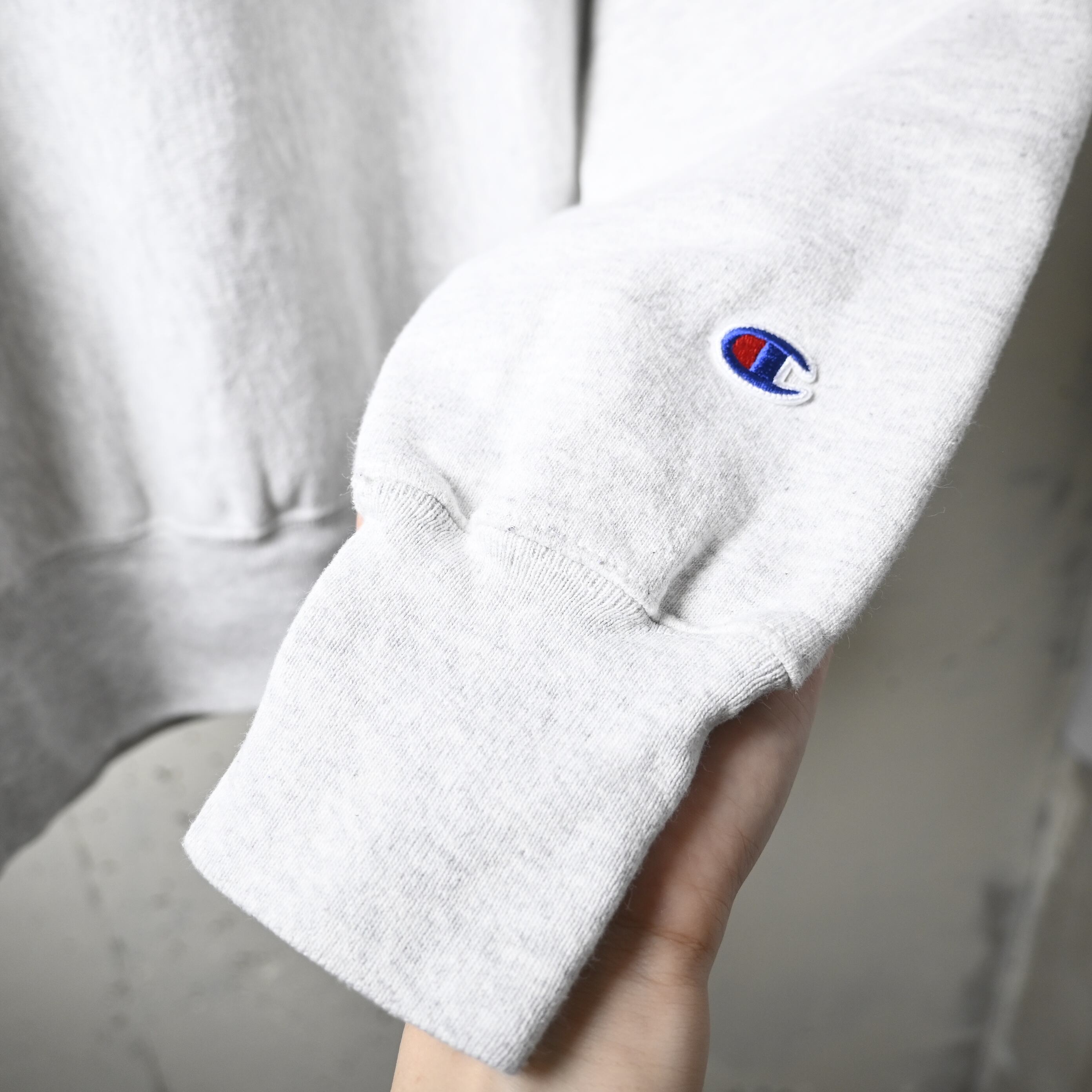 袖にはChampionロゴ刺繍入り。