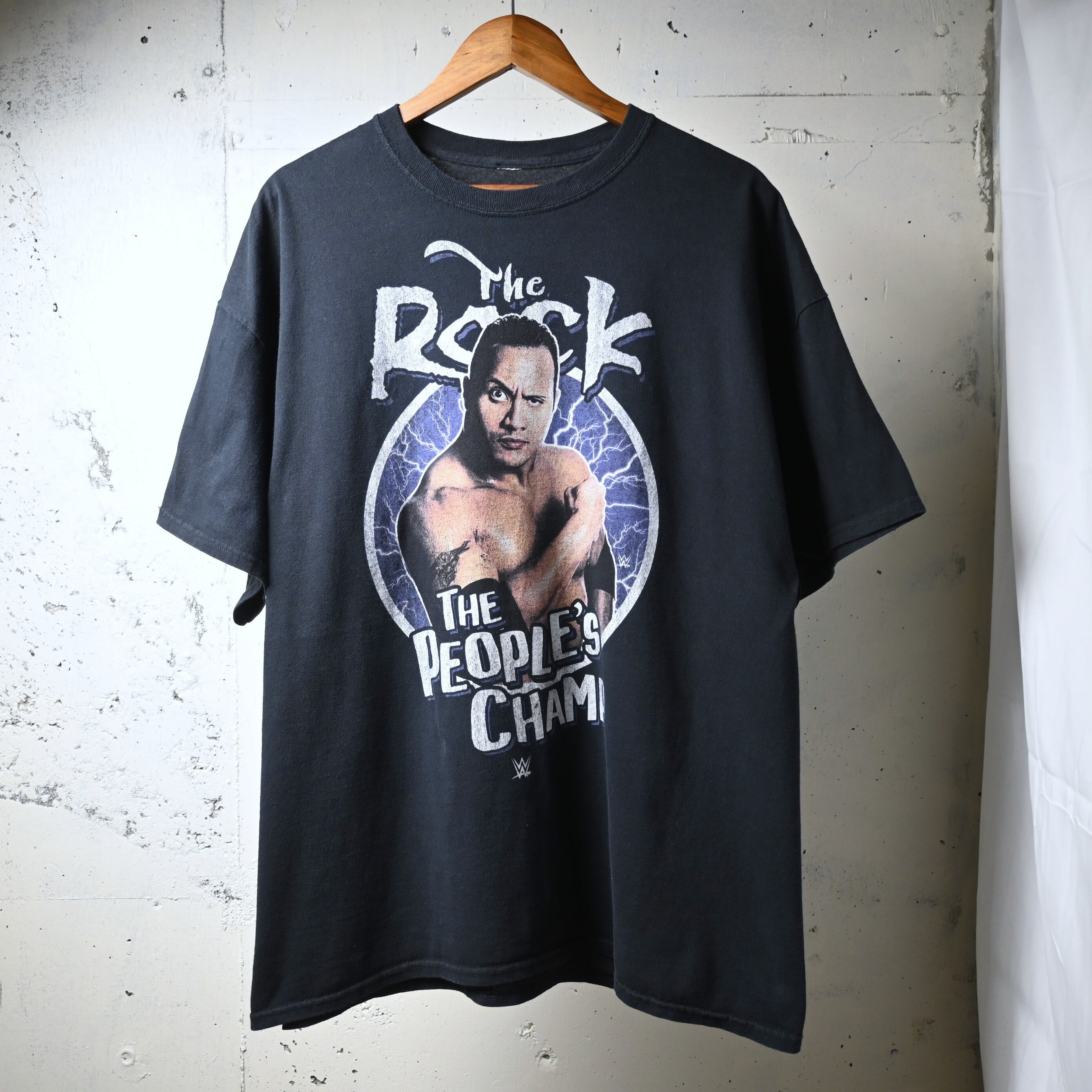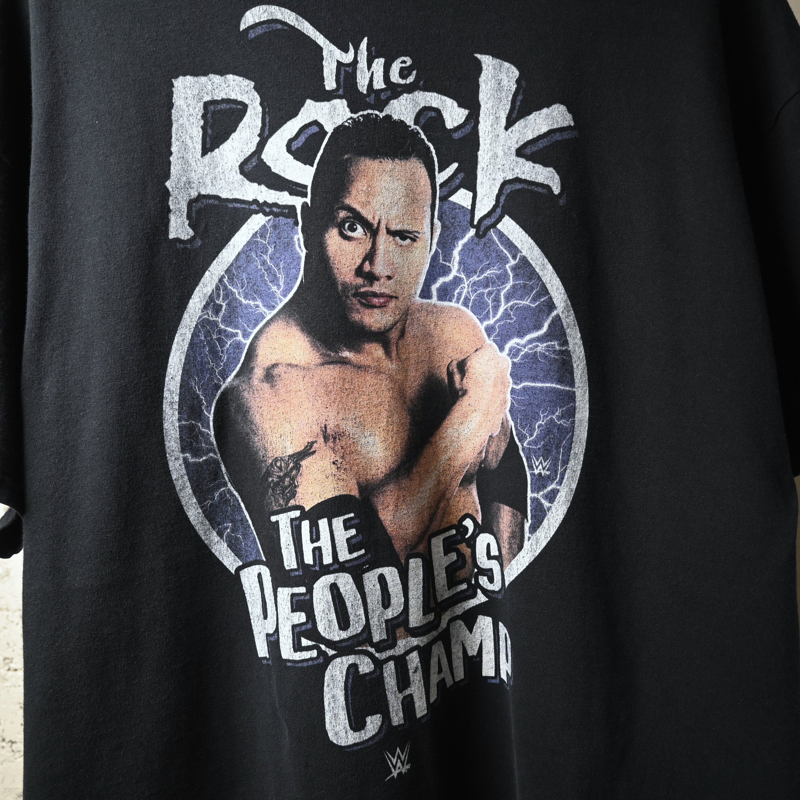 [ about XXL ] 00s The Rock WWE プリントTシャツ ブラック プロレスTシャツ ヴィンテージ