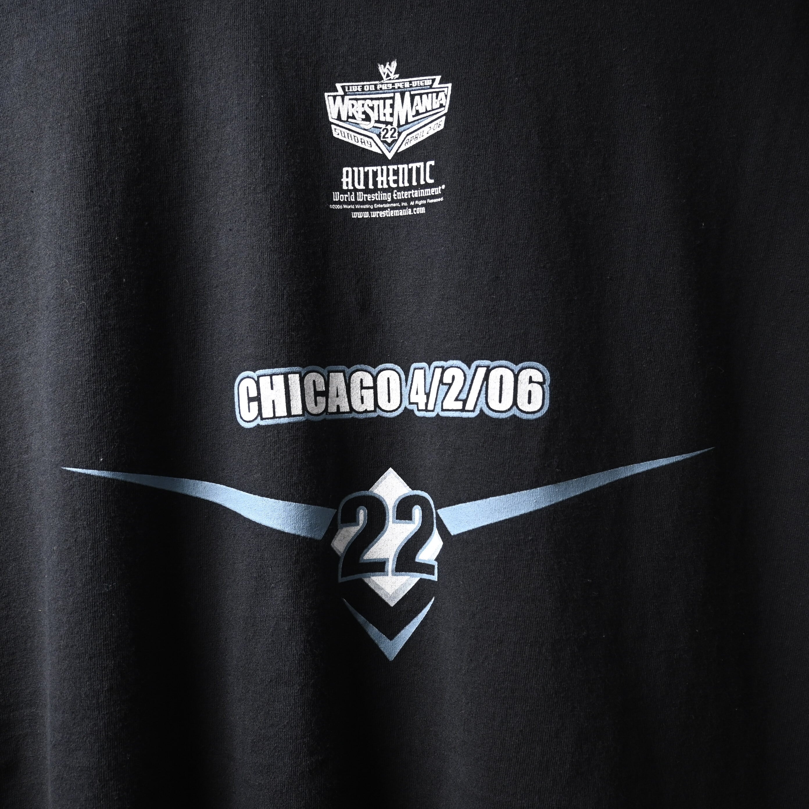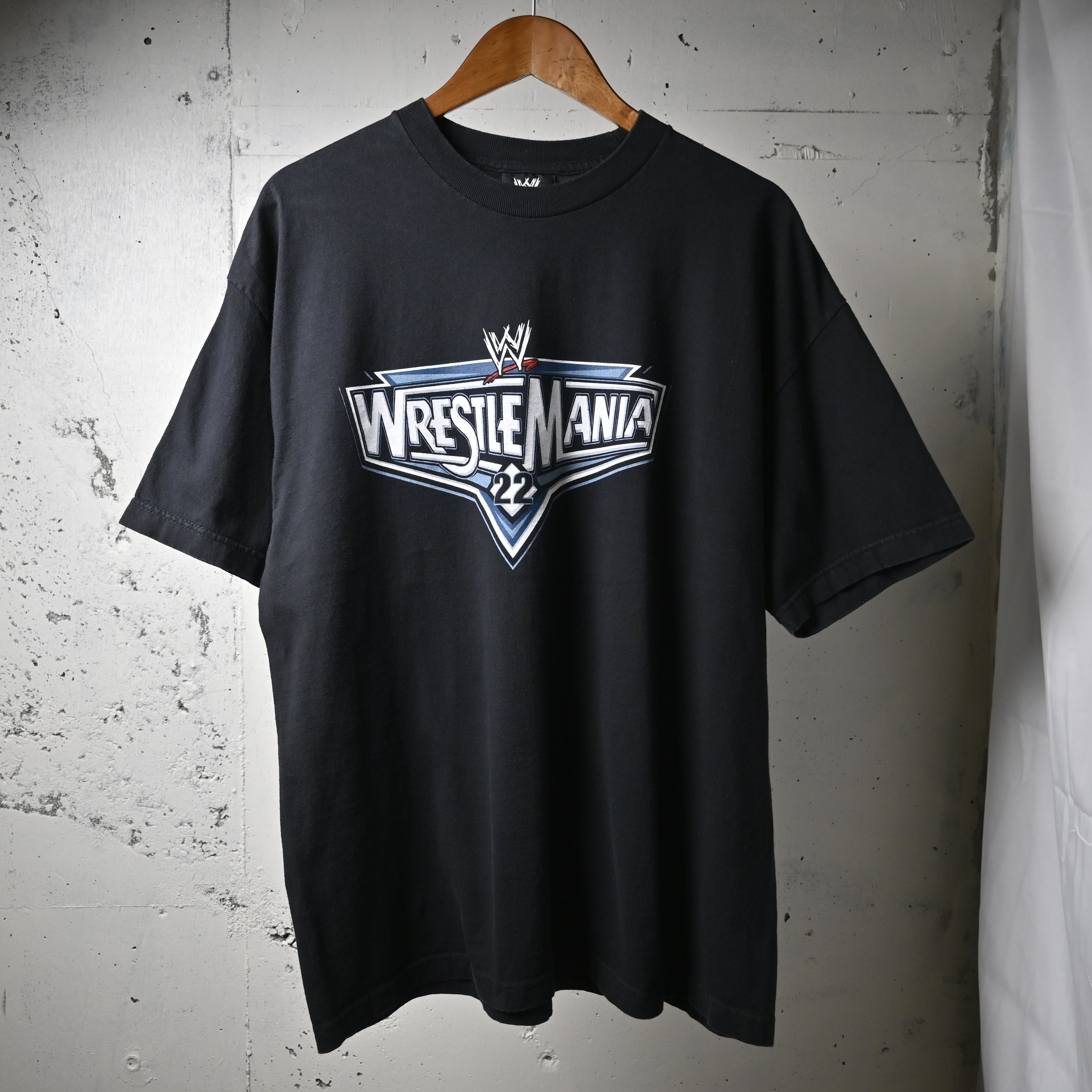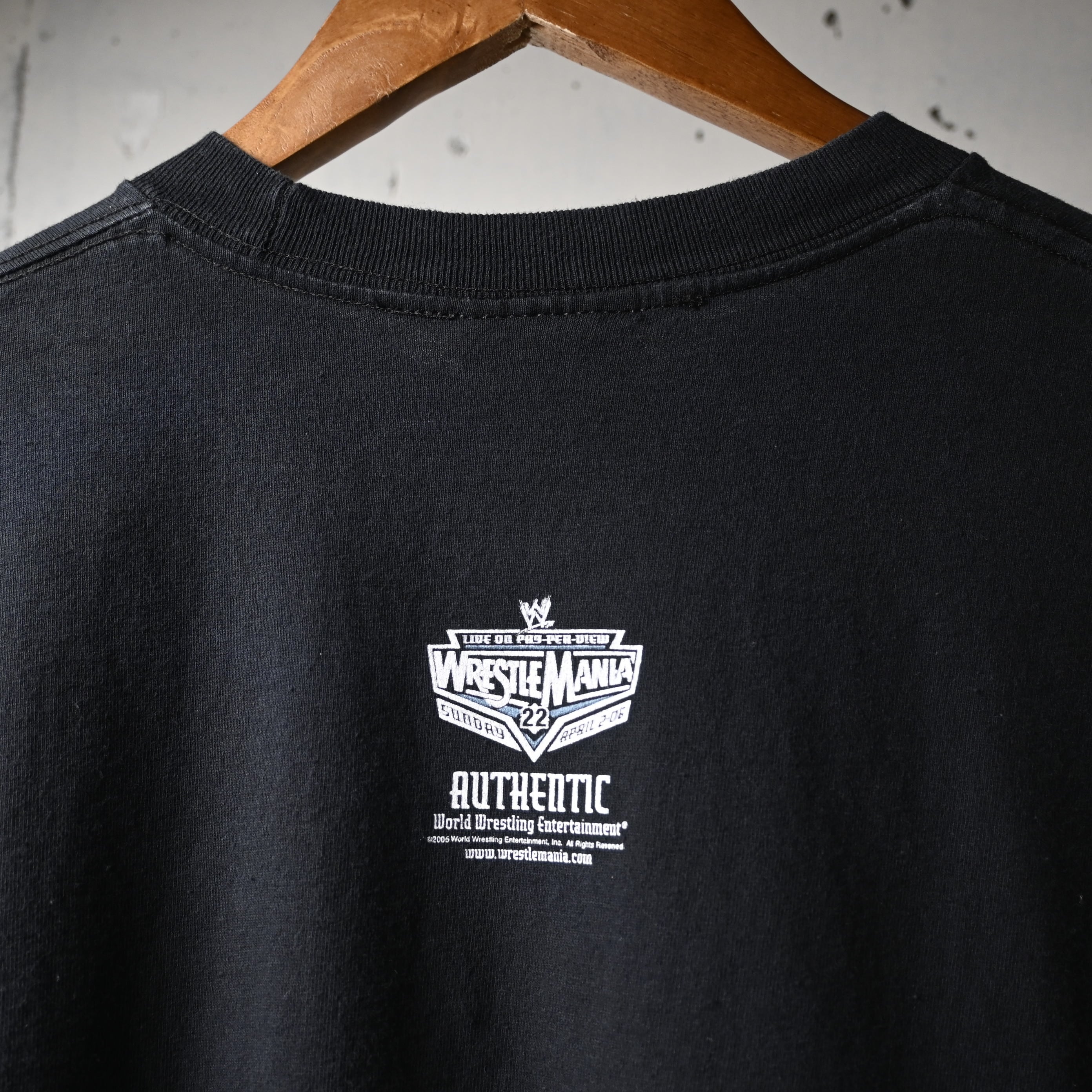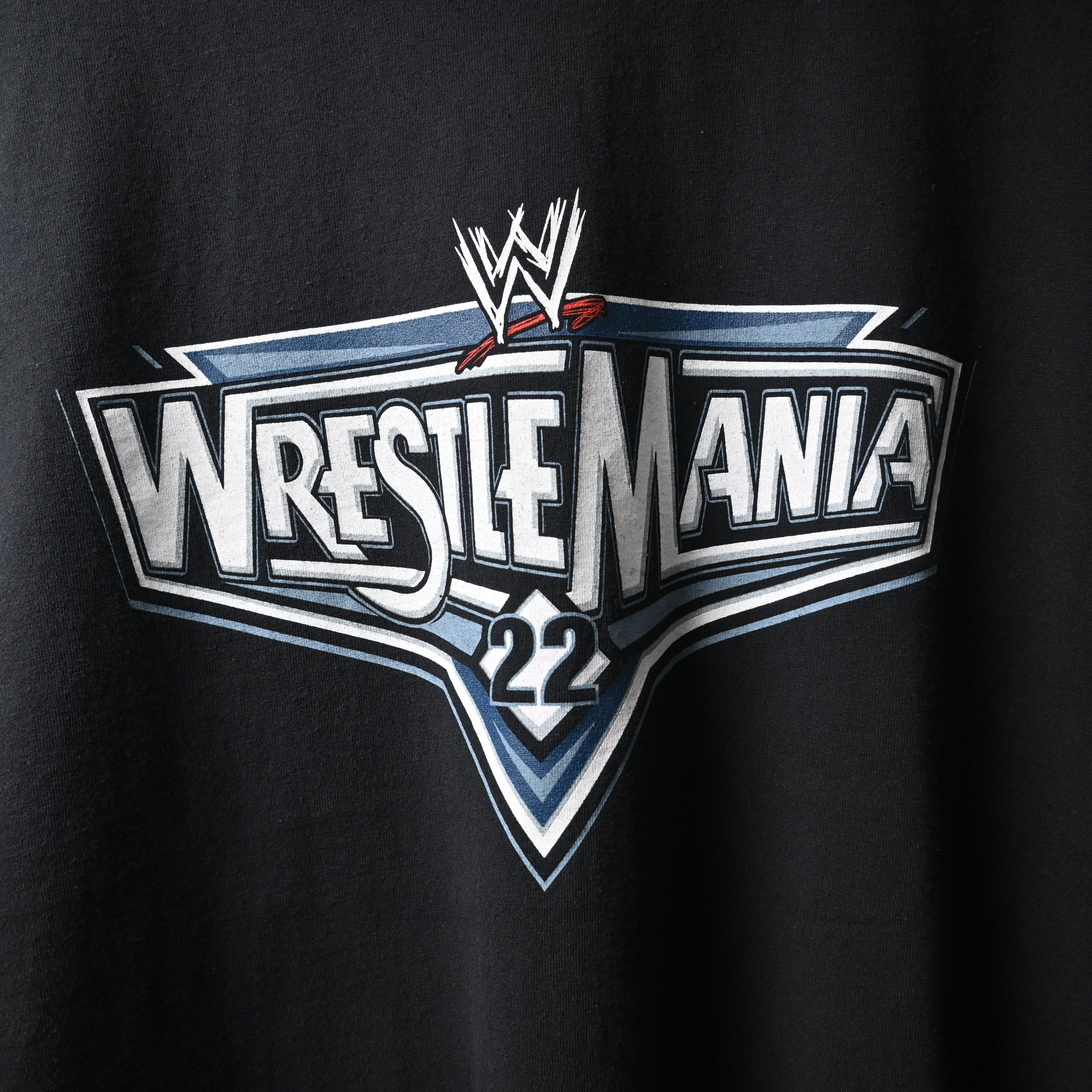 2006年コピーライト入り、WWE(World Wrestling Entertainment)公式の"WRESTLEMANIA 22"プリントTシャツ。