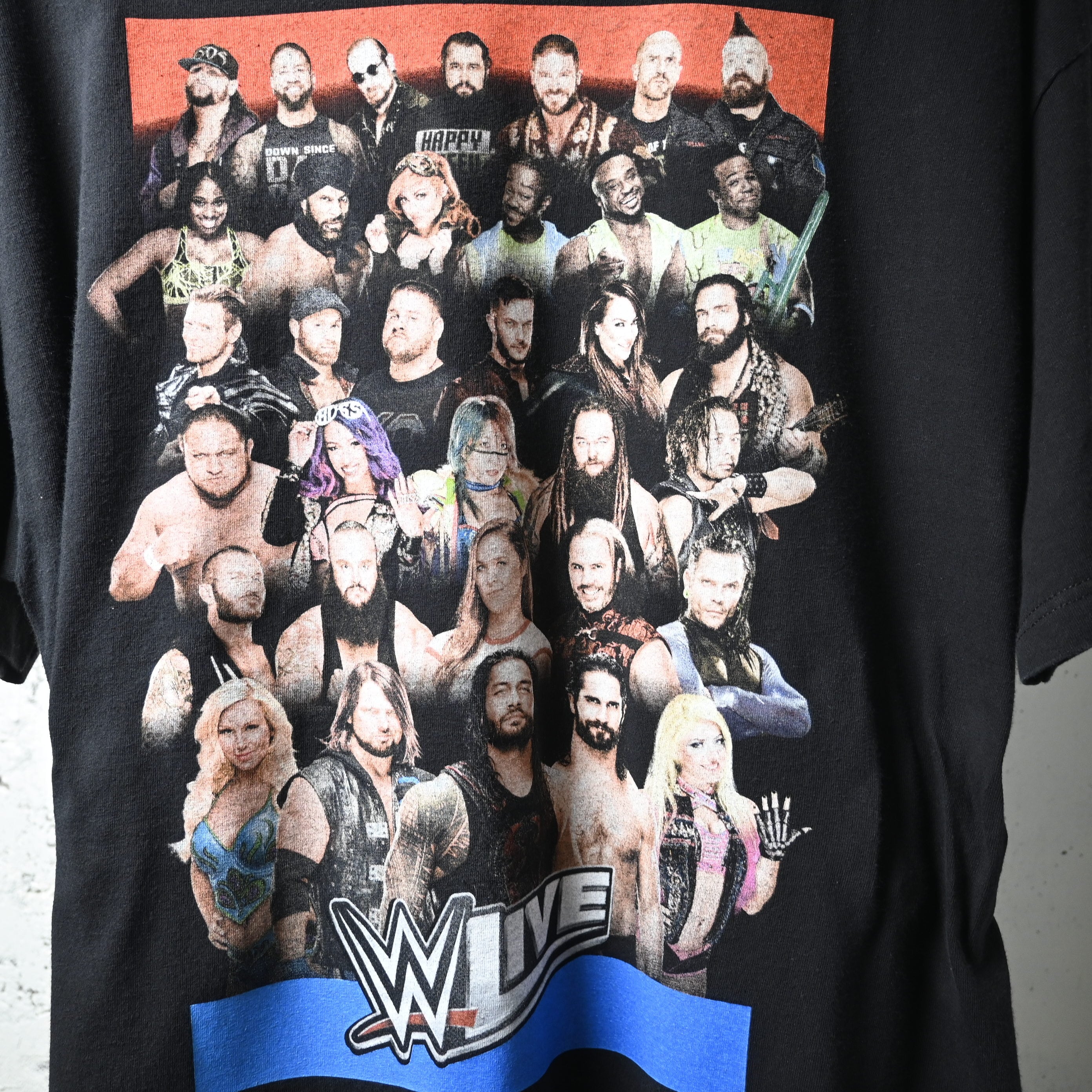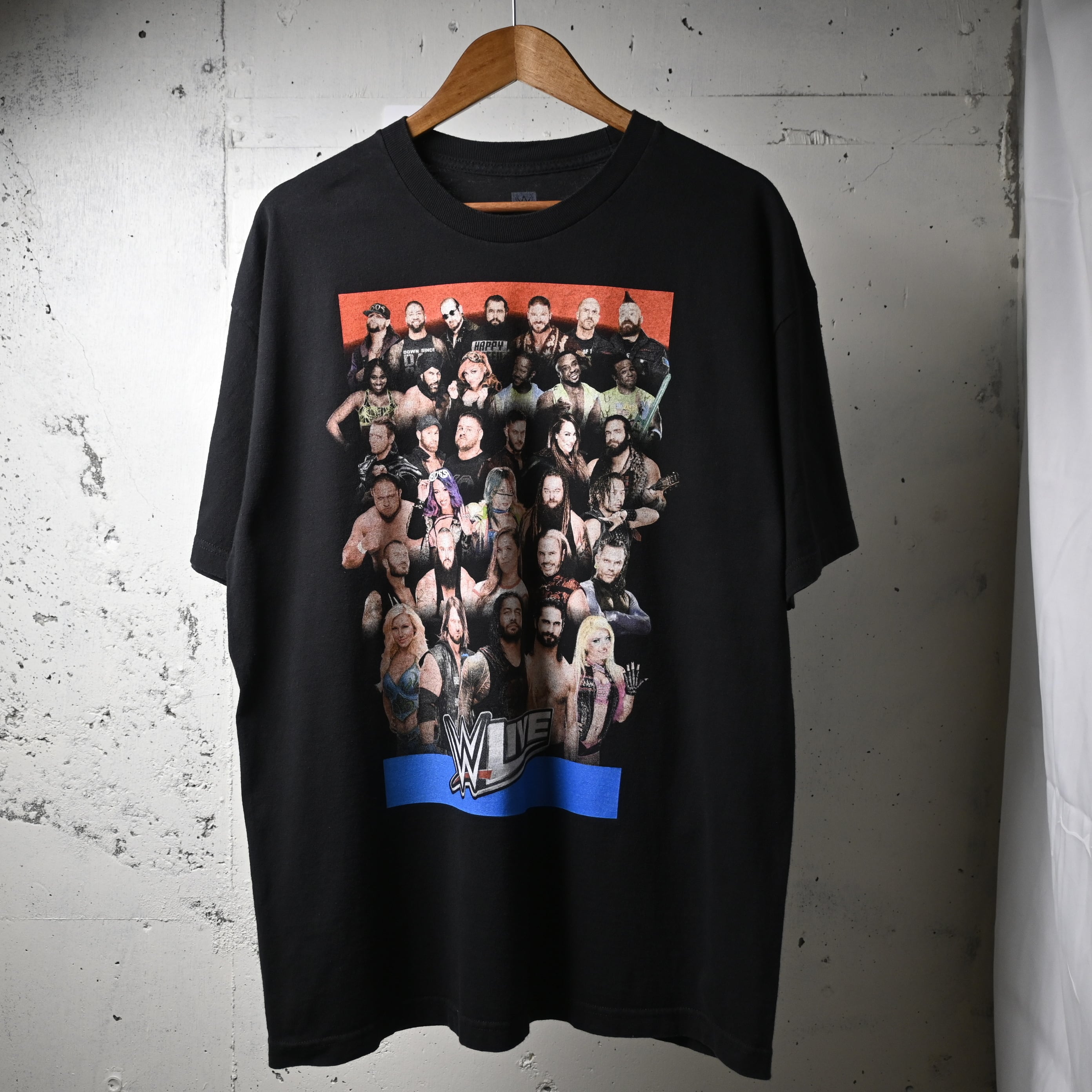 当時のWWEシーンをそのまま切り取ったようなデザインで、ファンアイテムとしてはもちろん、ストリートでも映える仕上がりです。