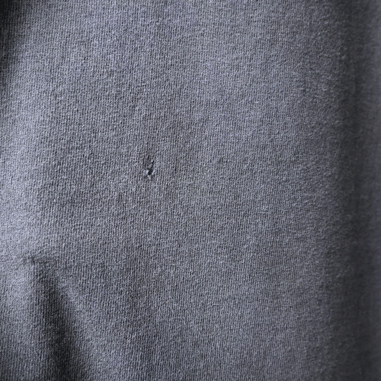 タグにダメージあり。袖や裾に茶色いシミ、前後どちらとも小穴あり。