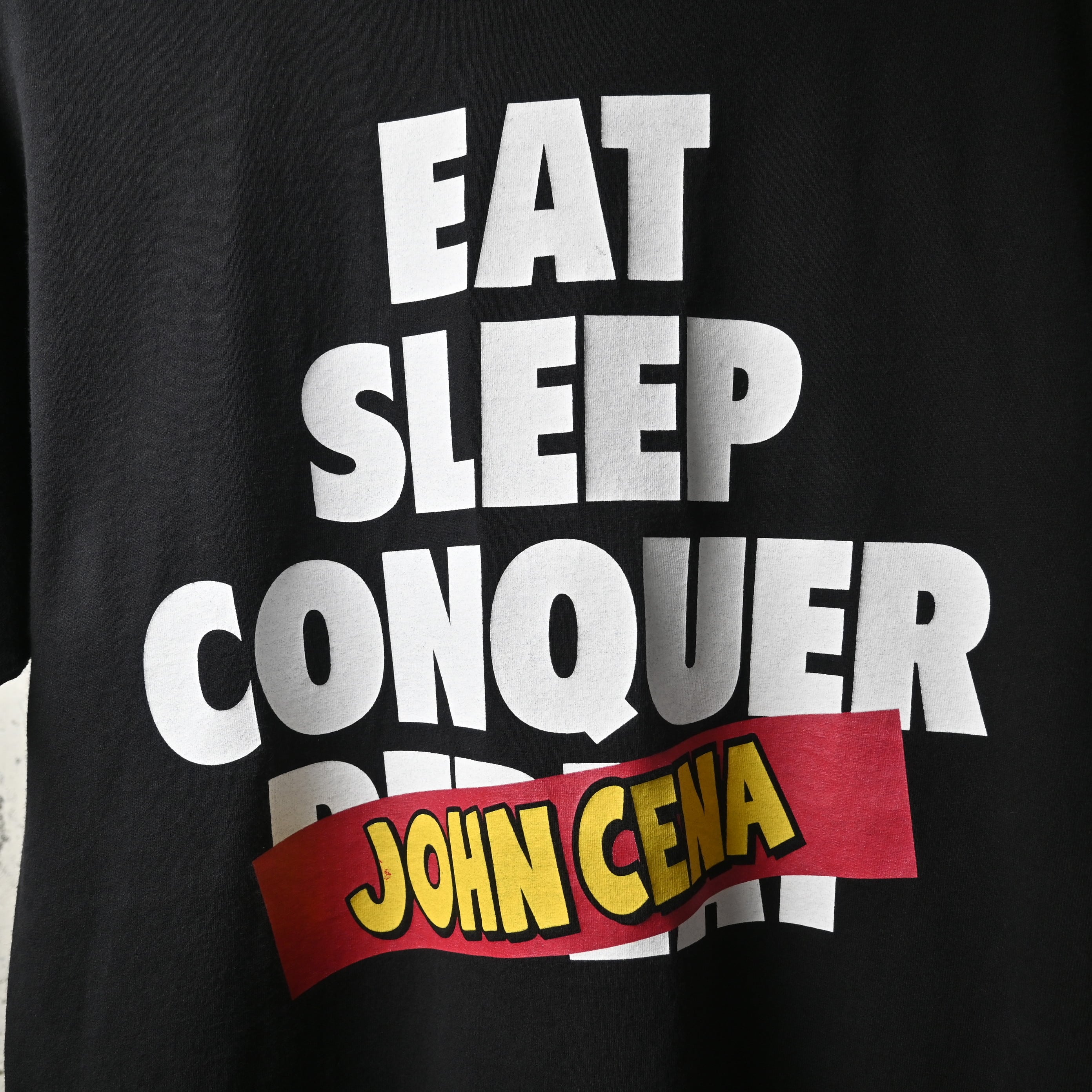 フロントには「EAT SLEEP CONQUER REPEAT」の力強いメッセージに、JOHN CENAのネームが入る王道デザイン。