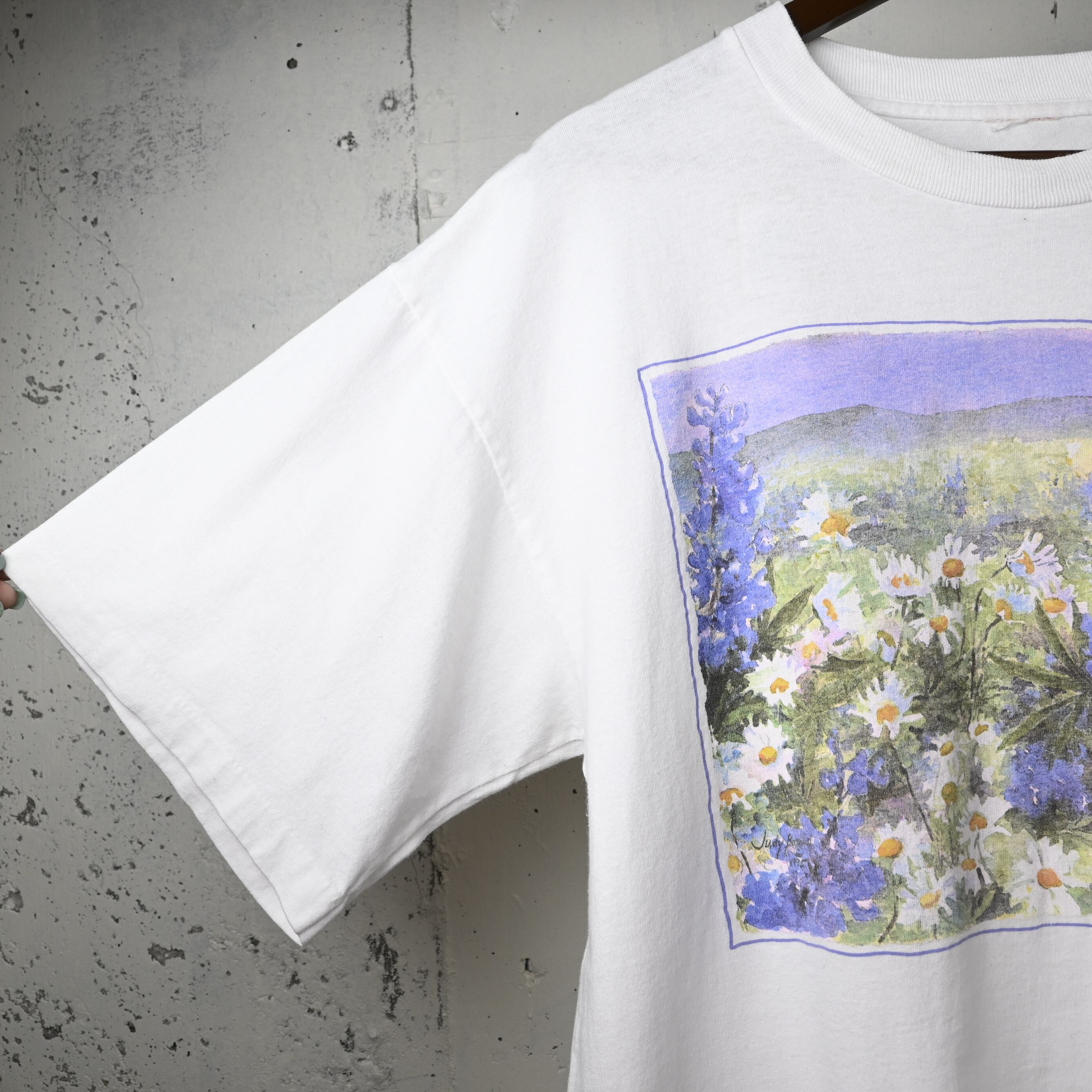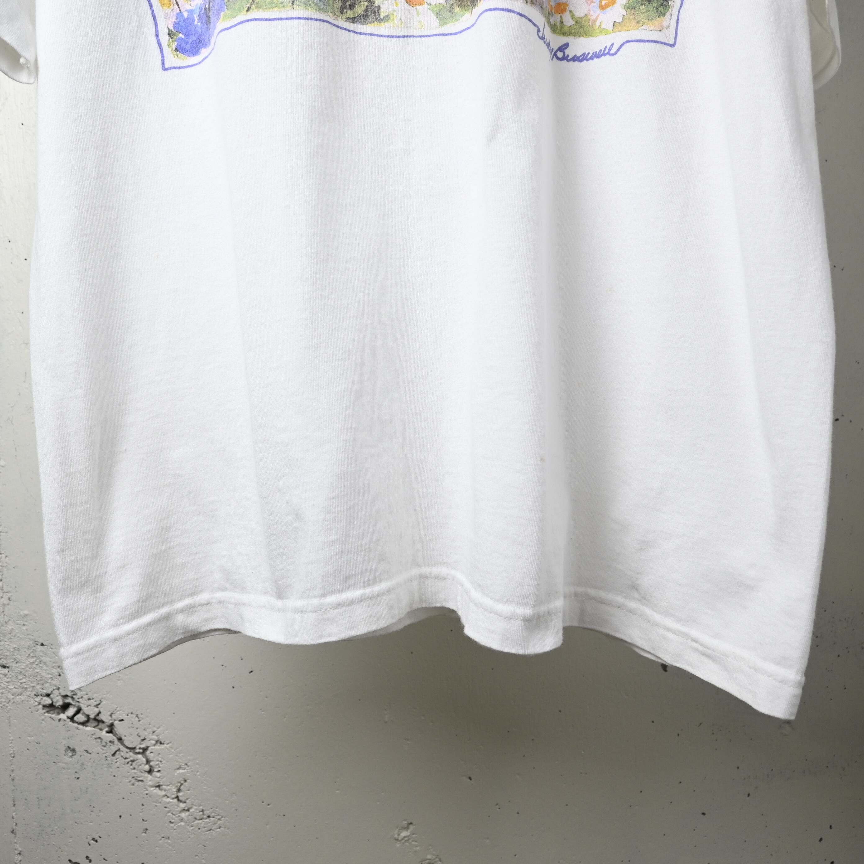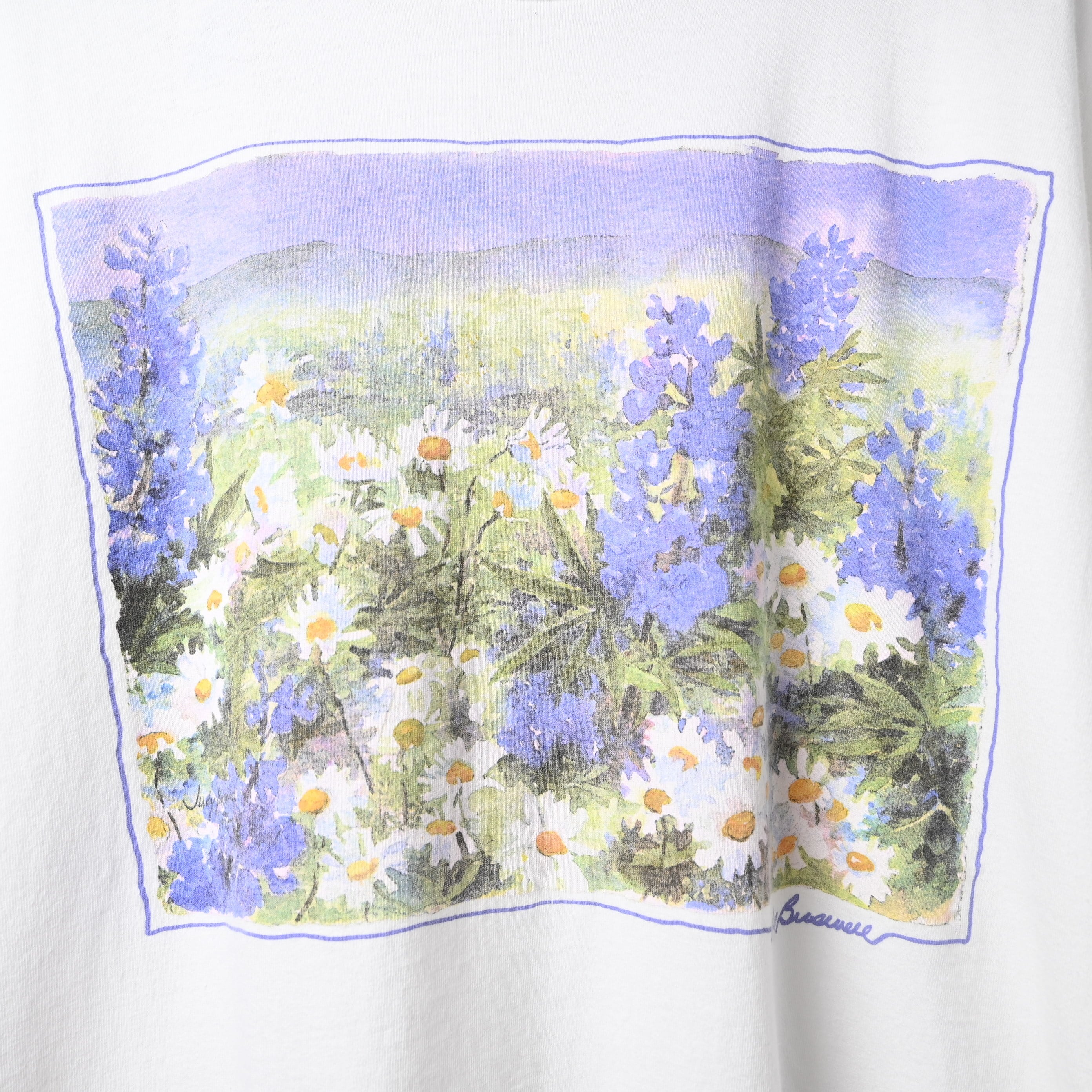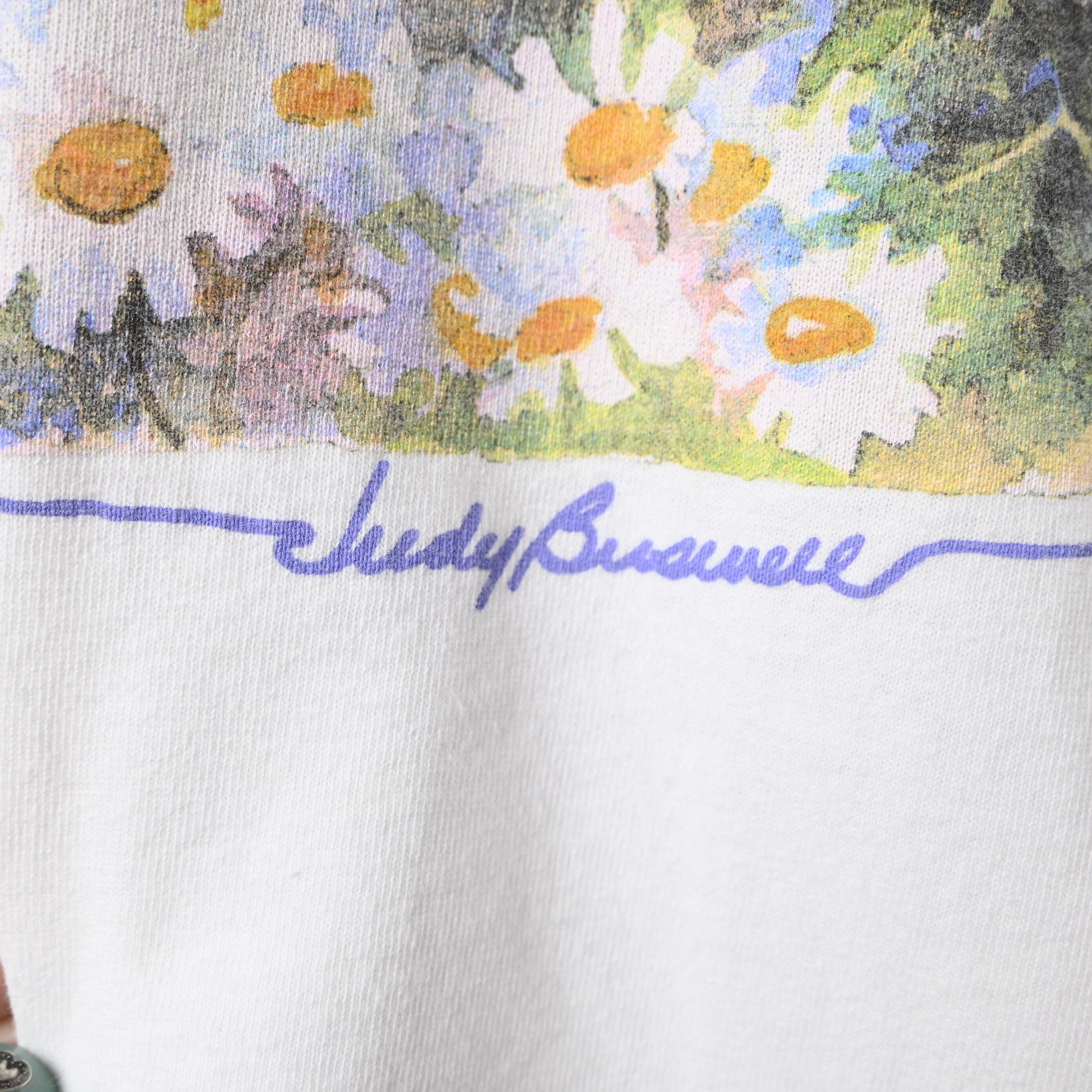 [ about XXL ] Unknown 90s "Judy Buswell" Flower Art Print T-shirt , White