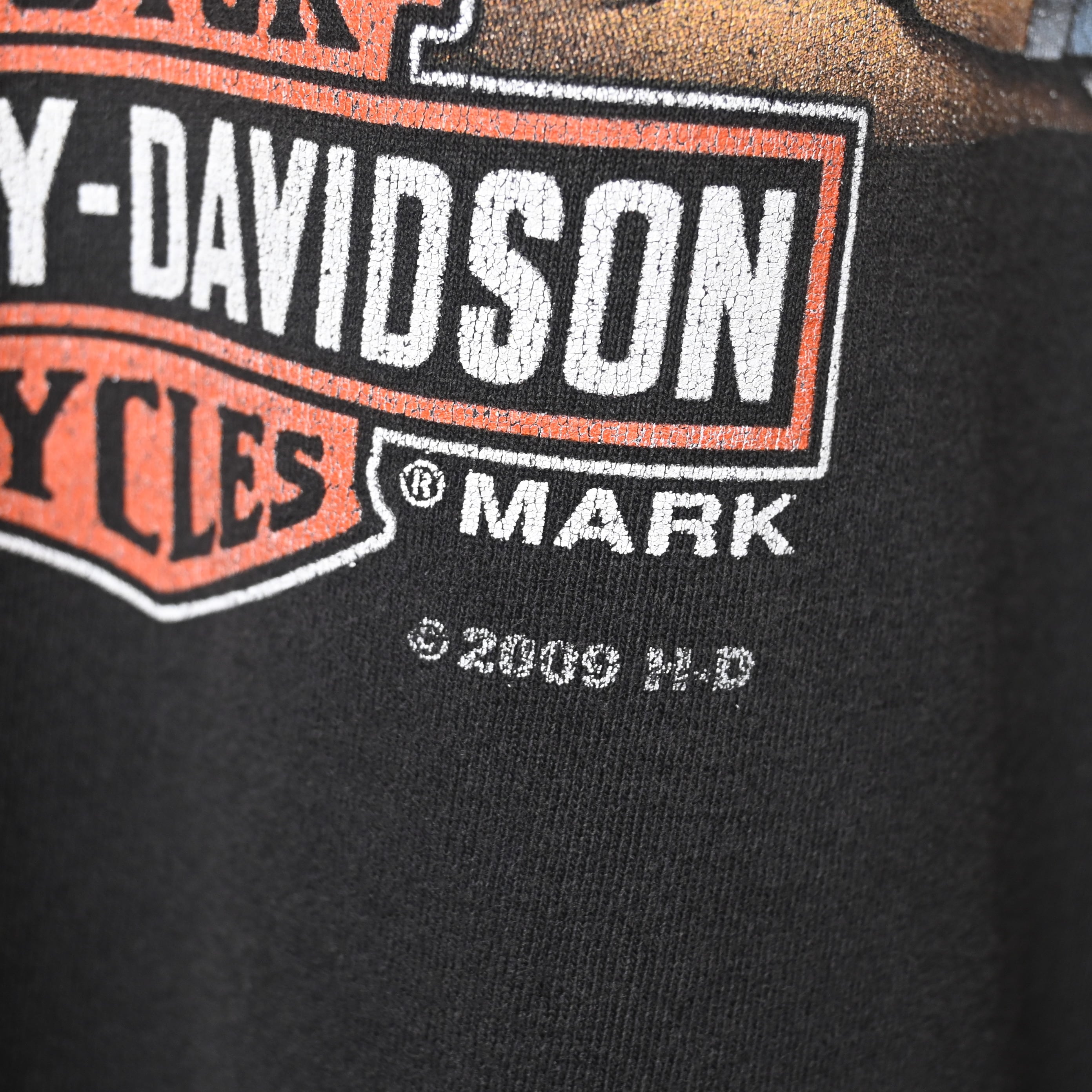 2009年コピーライト入り、USA製ボディのHARLEY-DAVIDSONプリントTシャツ。