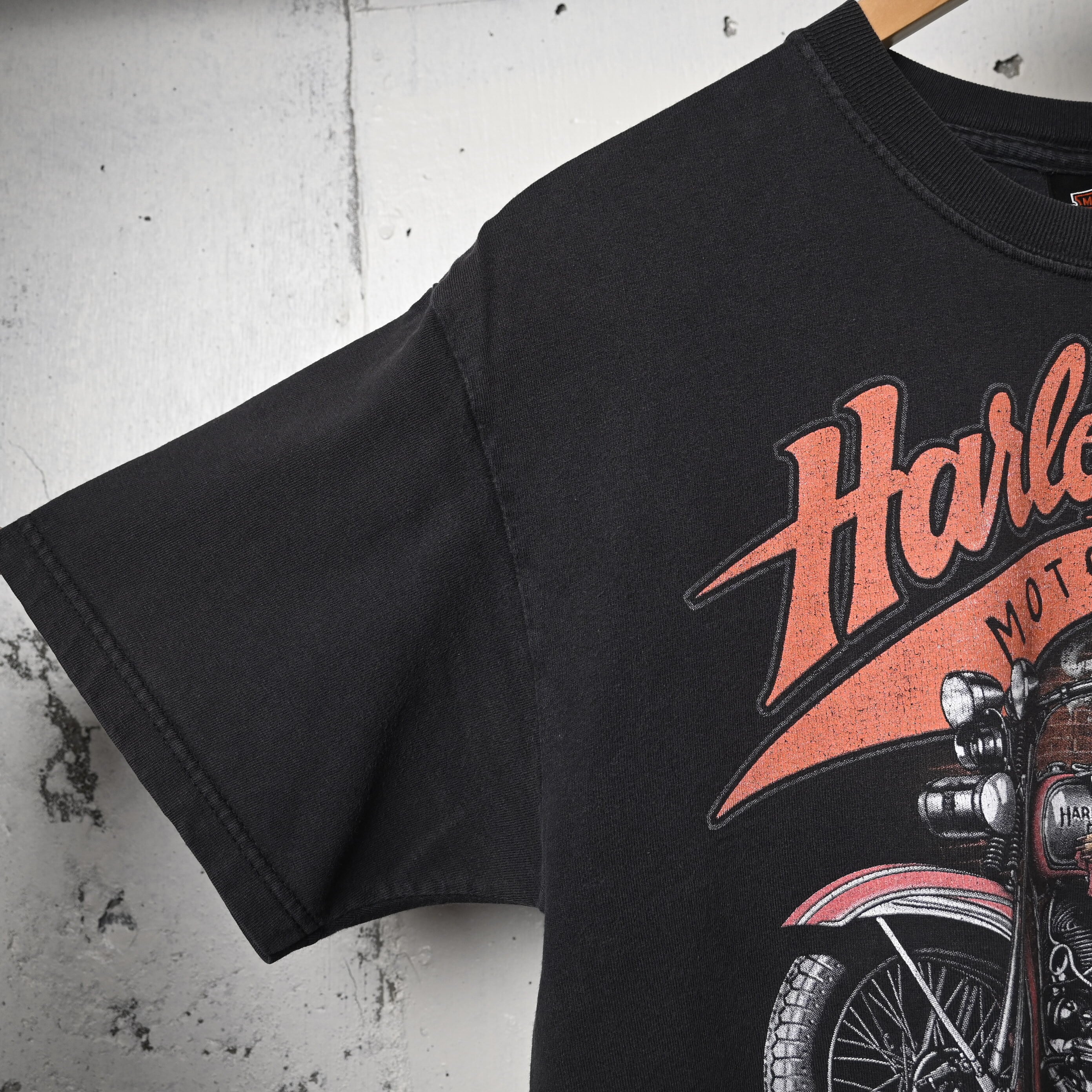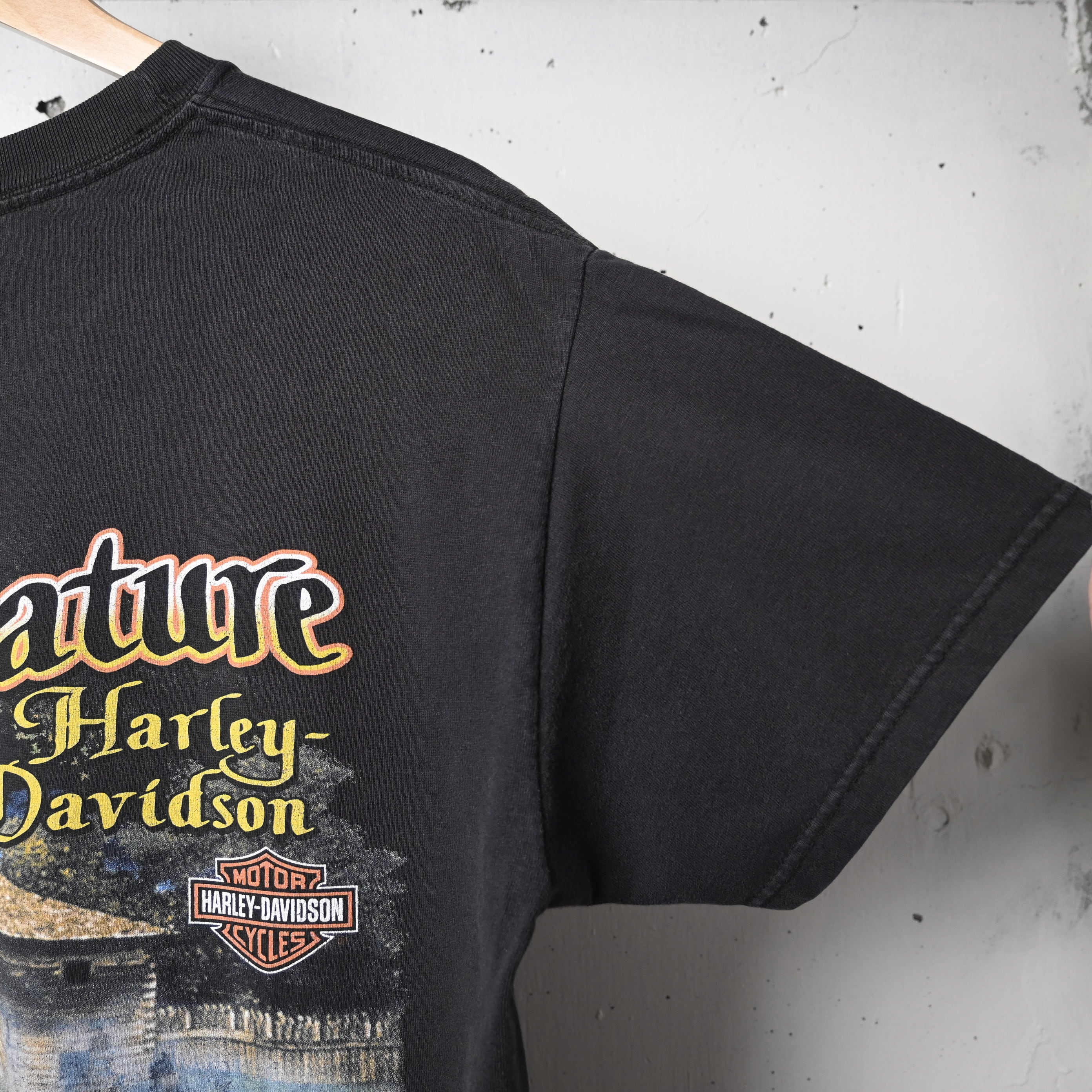 [ M ] HARLEY DAVIDSON (c)2009 USA製 "Perrysburg" Print T-shirt , Black