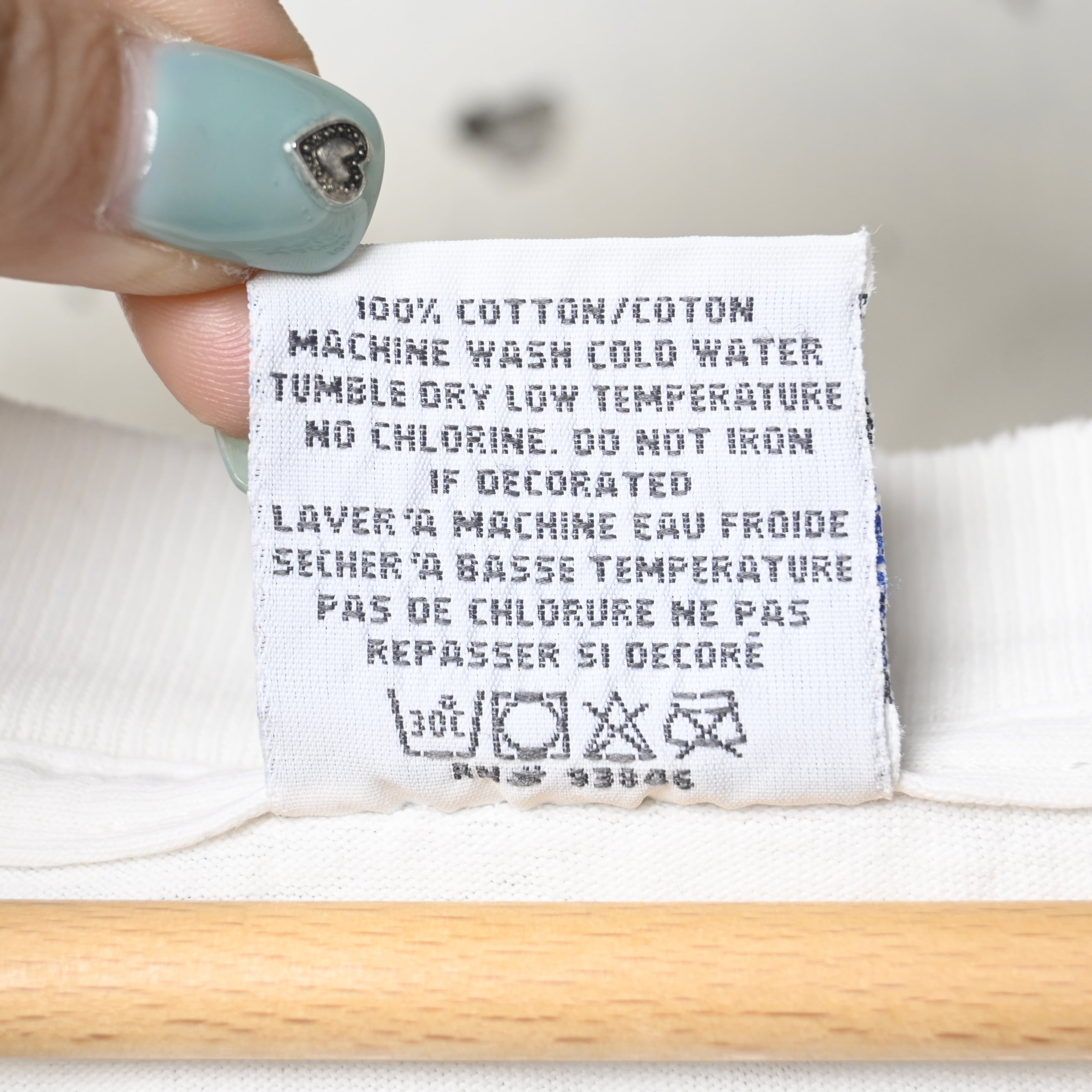 【コンディション】リブにダメージ、フロント・袖付近にシミ汚れ、小穴。背面にも小さなダメージが見られます。その他全体的に使用感あり。ヴィンテージ・USED商品の特性としてご理解ください。