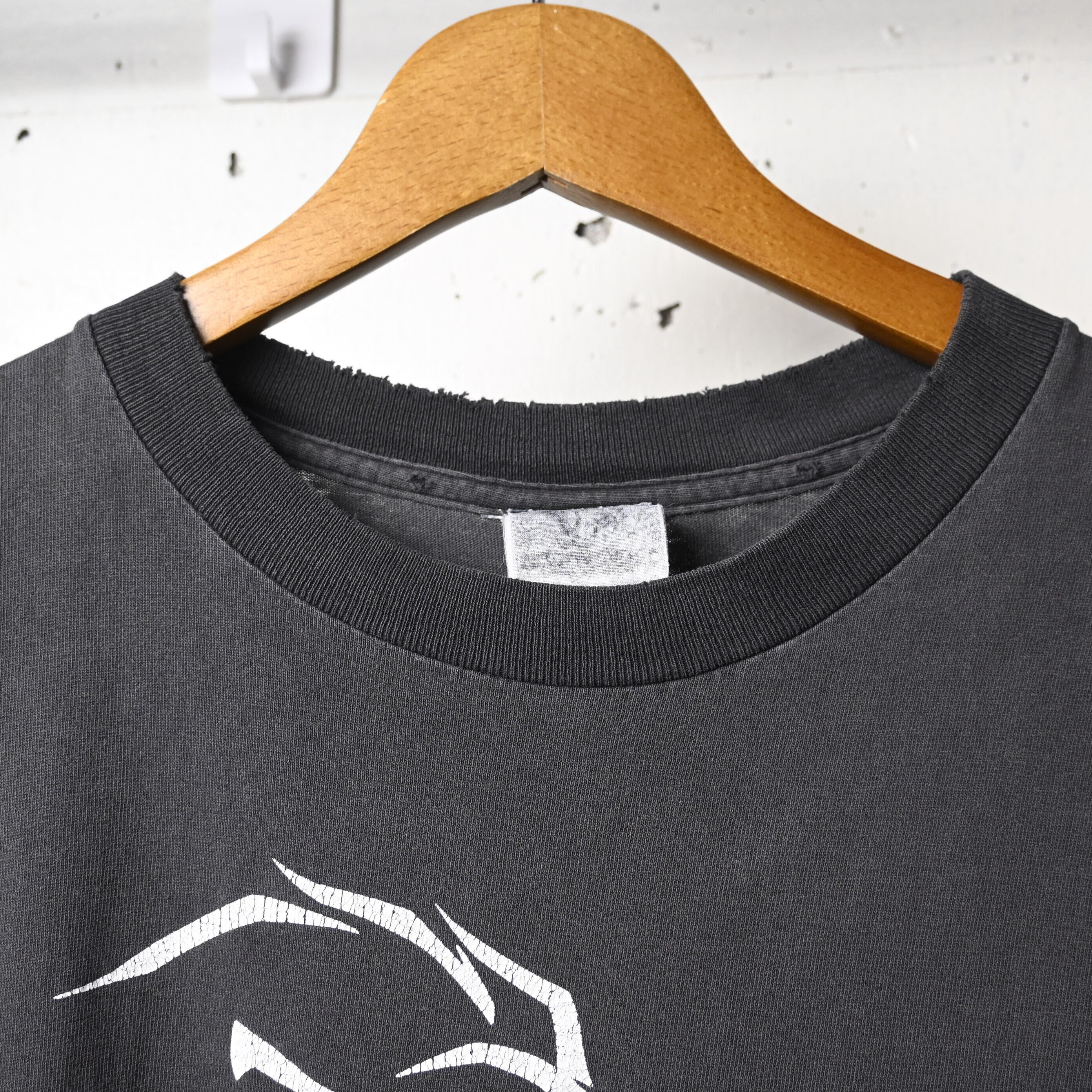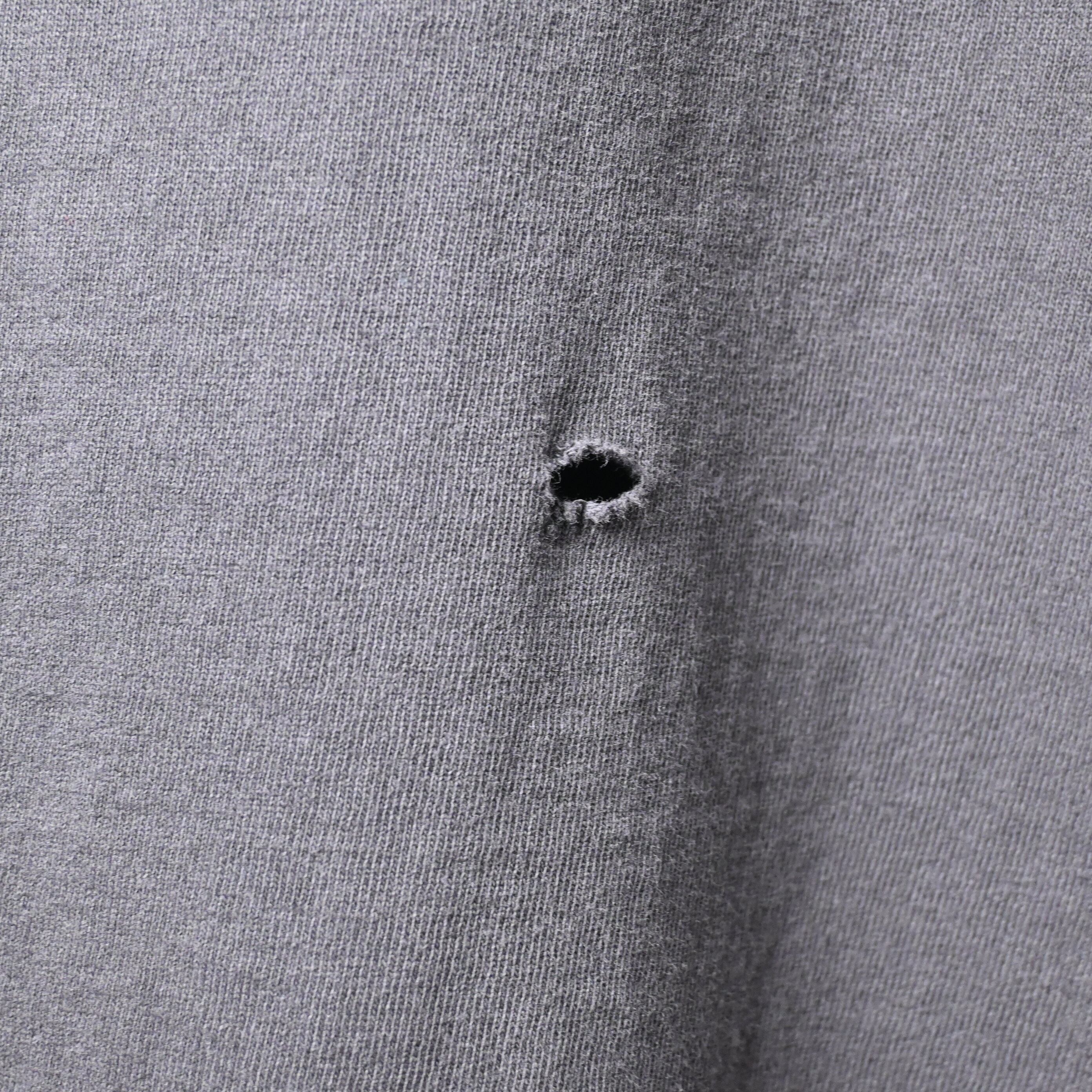 【コンディション】全体的にフェード、プリントクラックあり。フロント、脇、肩に小穴あり。襟や袖にはダメージもありますが、着用での支障はなく、雰囲気として楽しめるUSEDコンディションです。