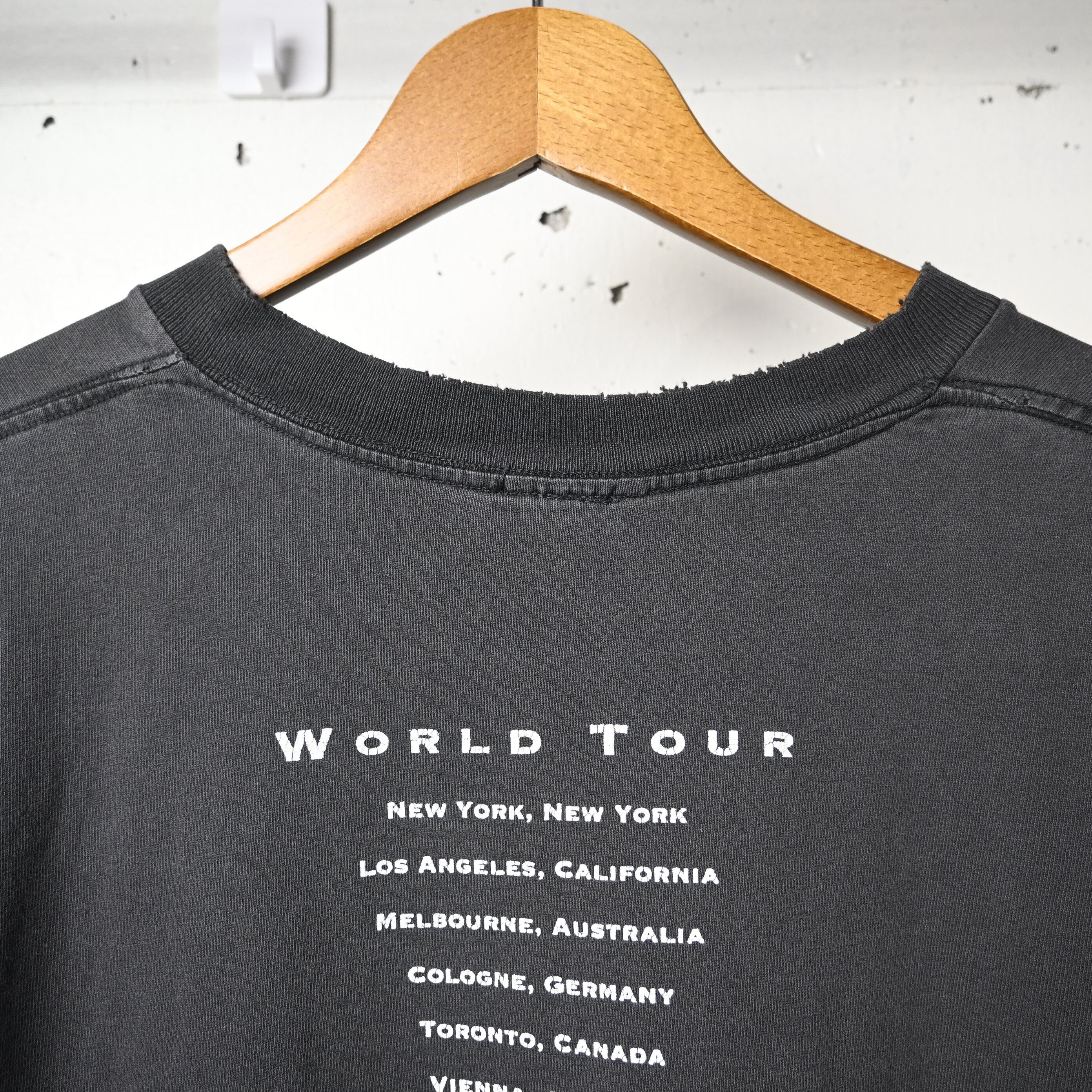 バックには「WORLD TOUR」の文字と共に、ニューヨーク、ロサンゼルス、メルボルン、ケルン、トロント、ウィーン、東京、大阪などの都市名が並び、ツアーTらしい要素も魅力的。