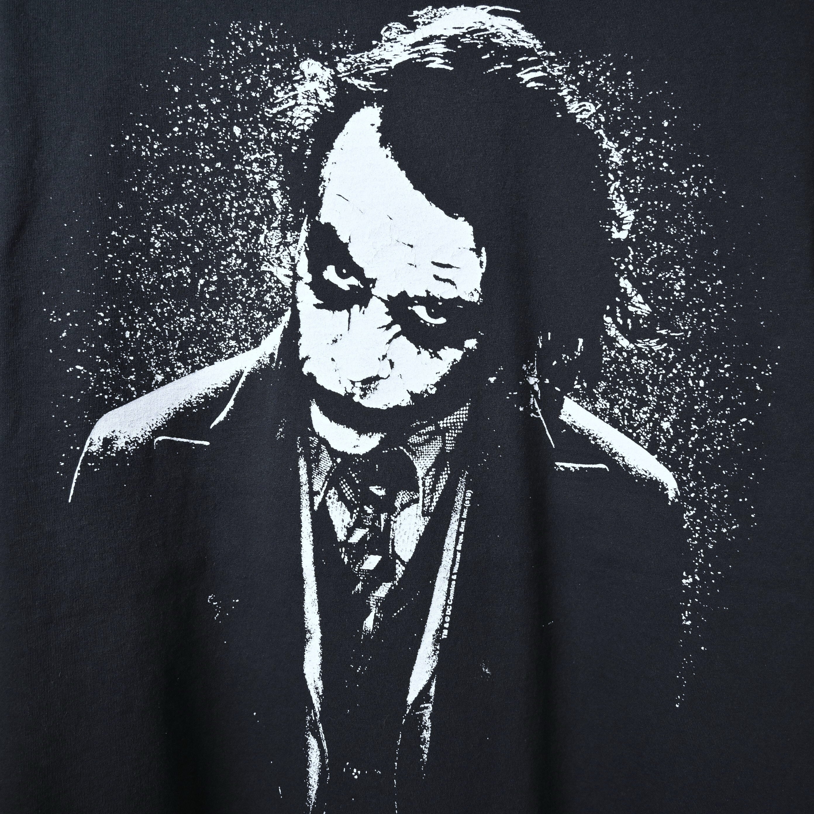 映画『ダークナイト』にて、ヒース・レジャーが演じたジョーカーのプリントTシャツ。