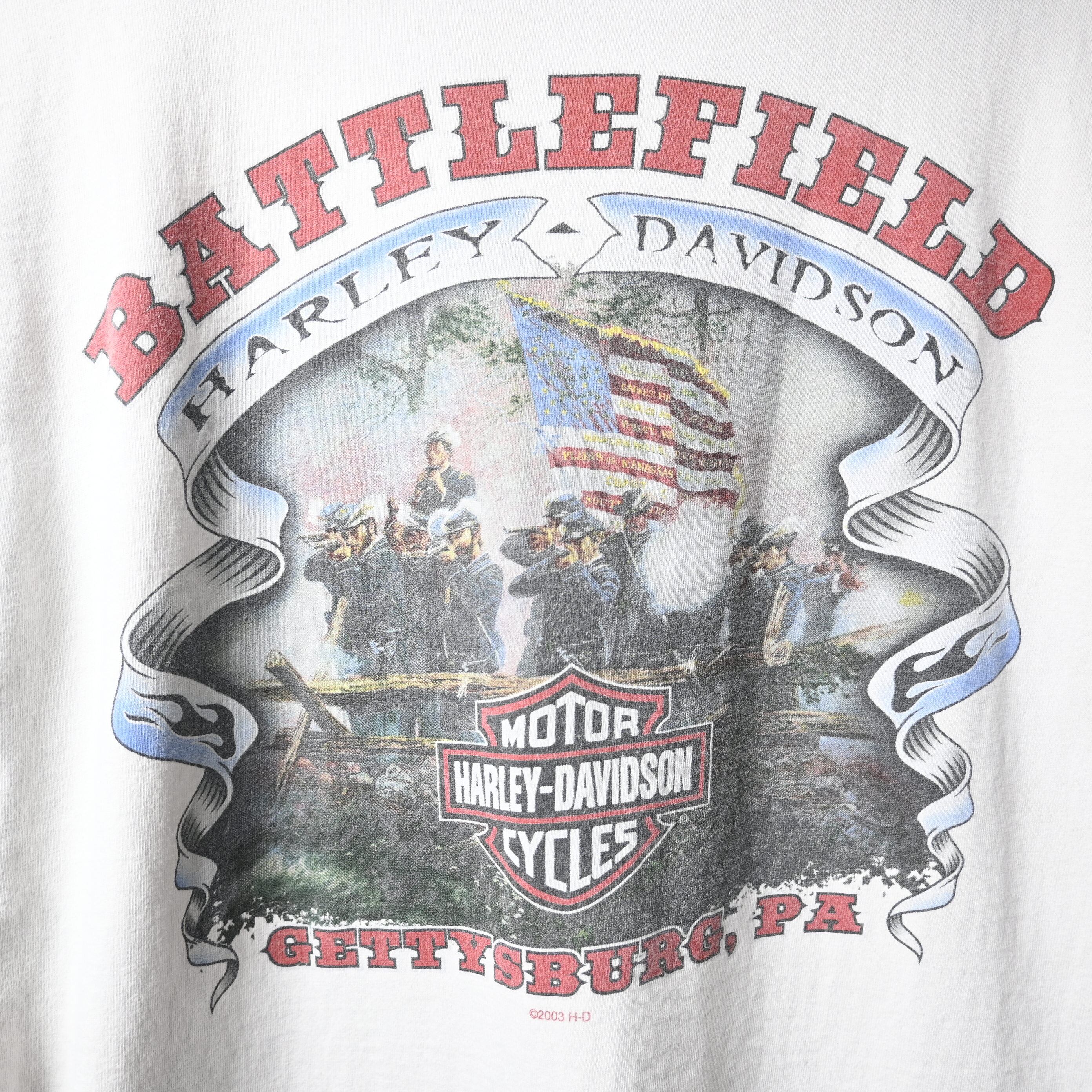 [ L ] HARLEY DAVIDSON 00s USA製 "GETTY SBURG , PA” Print L/S T-shirt , White