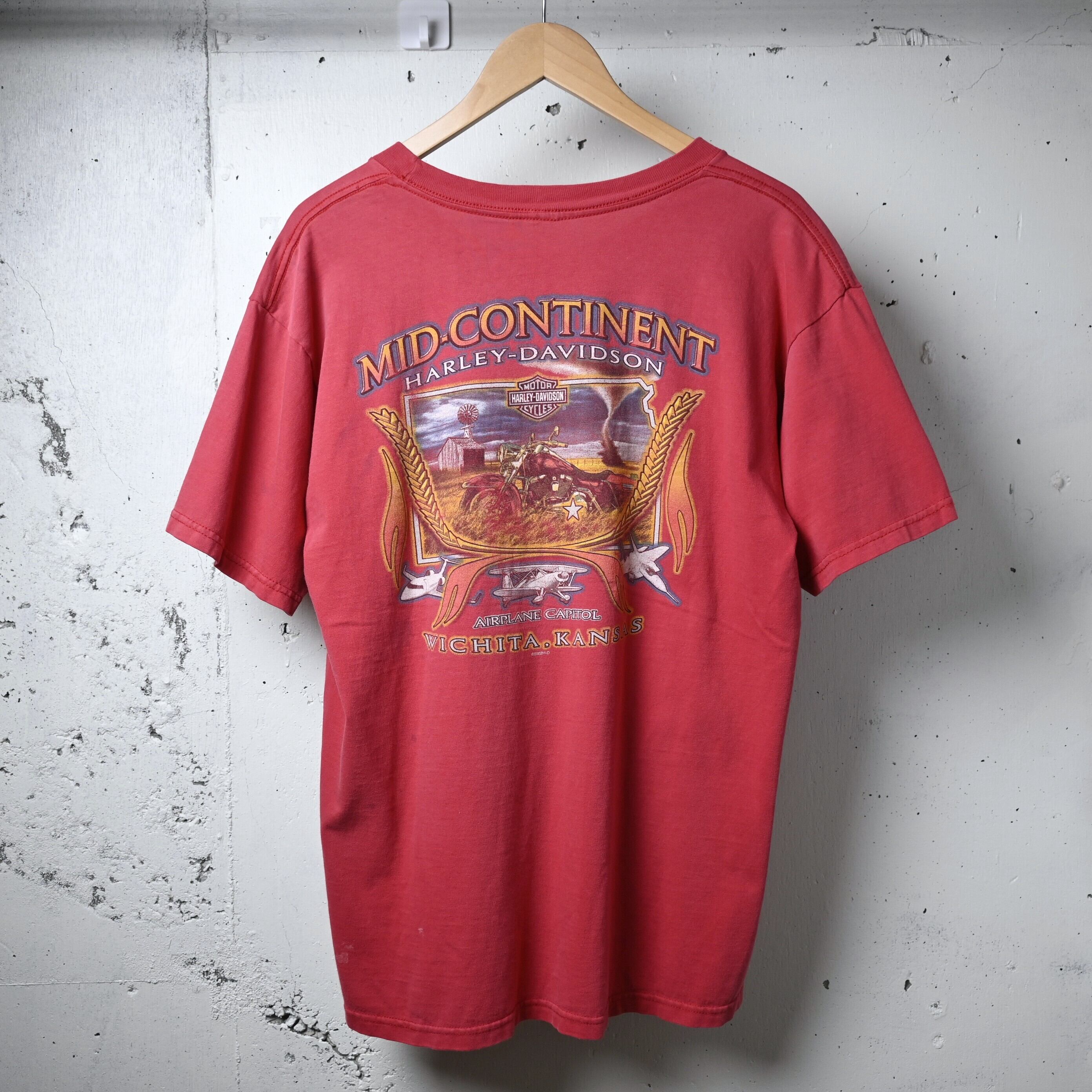 [ about L ] HARLEY DAVIDSON "WICHITA, KANSAS" Printed T-shirt , Red