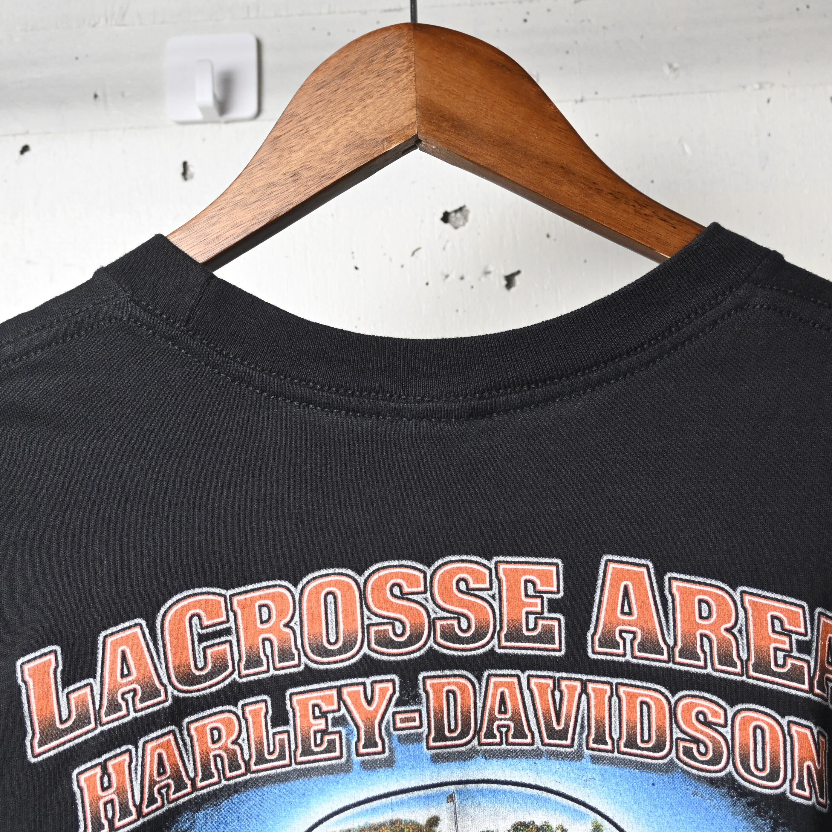 バックには「LACROSSE AREA HARLEY-DAVIDSON」のディーラープリント。