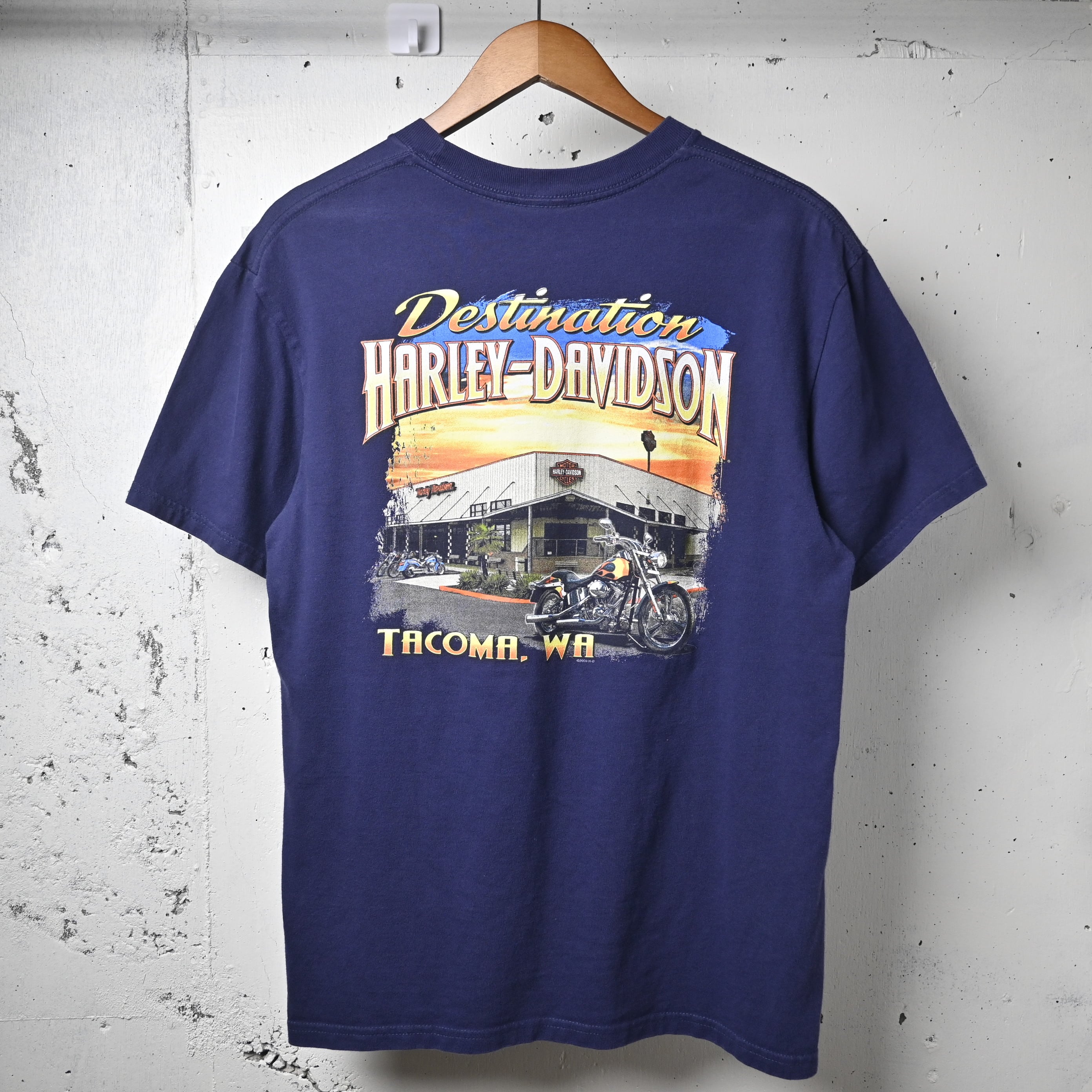 [ about L ] HARLEY-DAVIDSON 00’s “TACOMA, WA” Print T-shirt , Navy