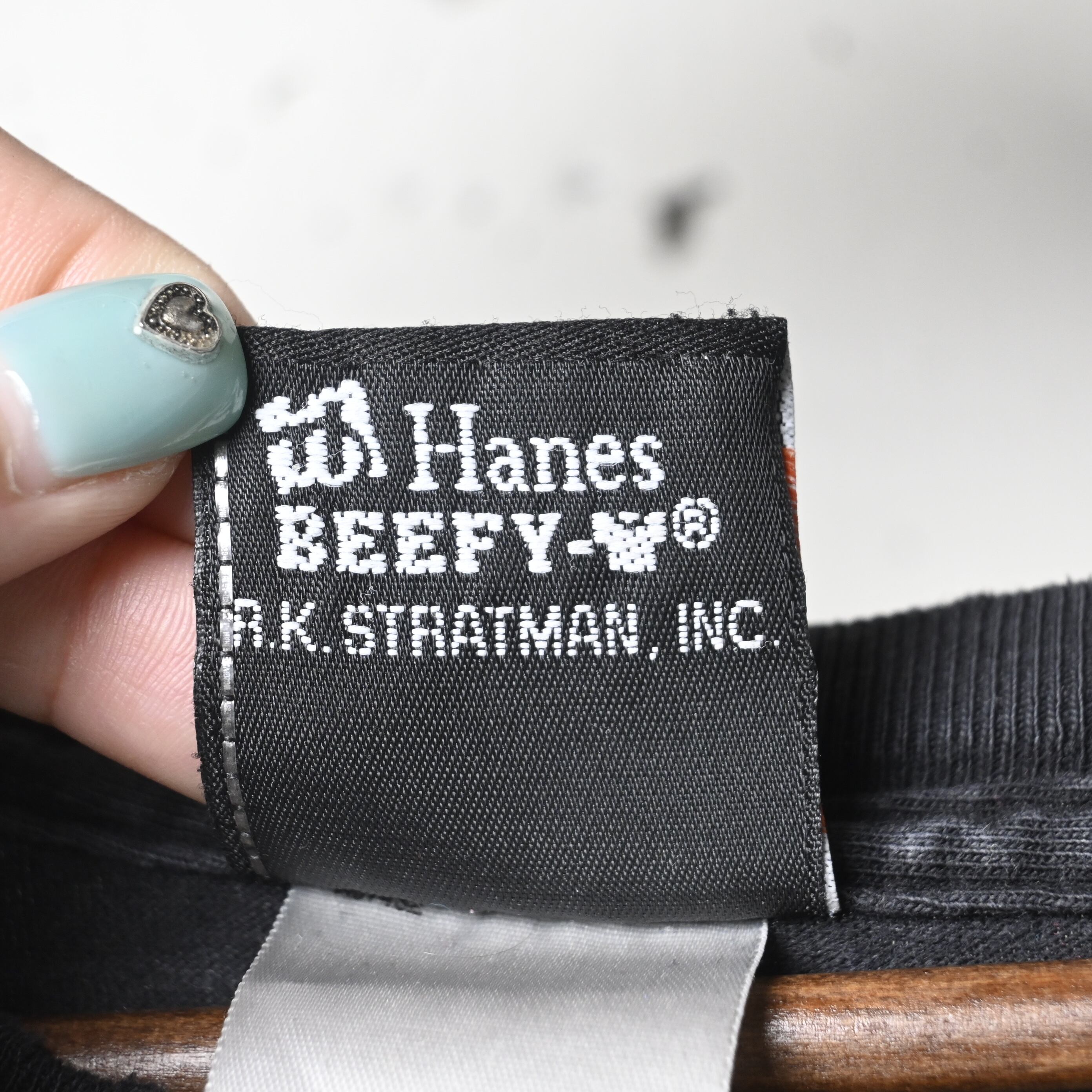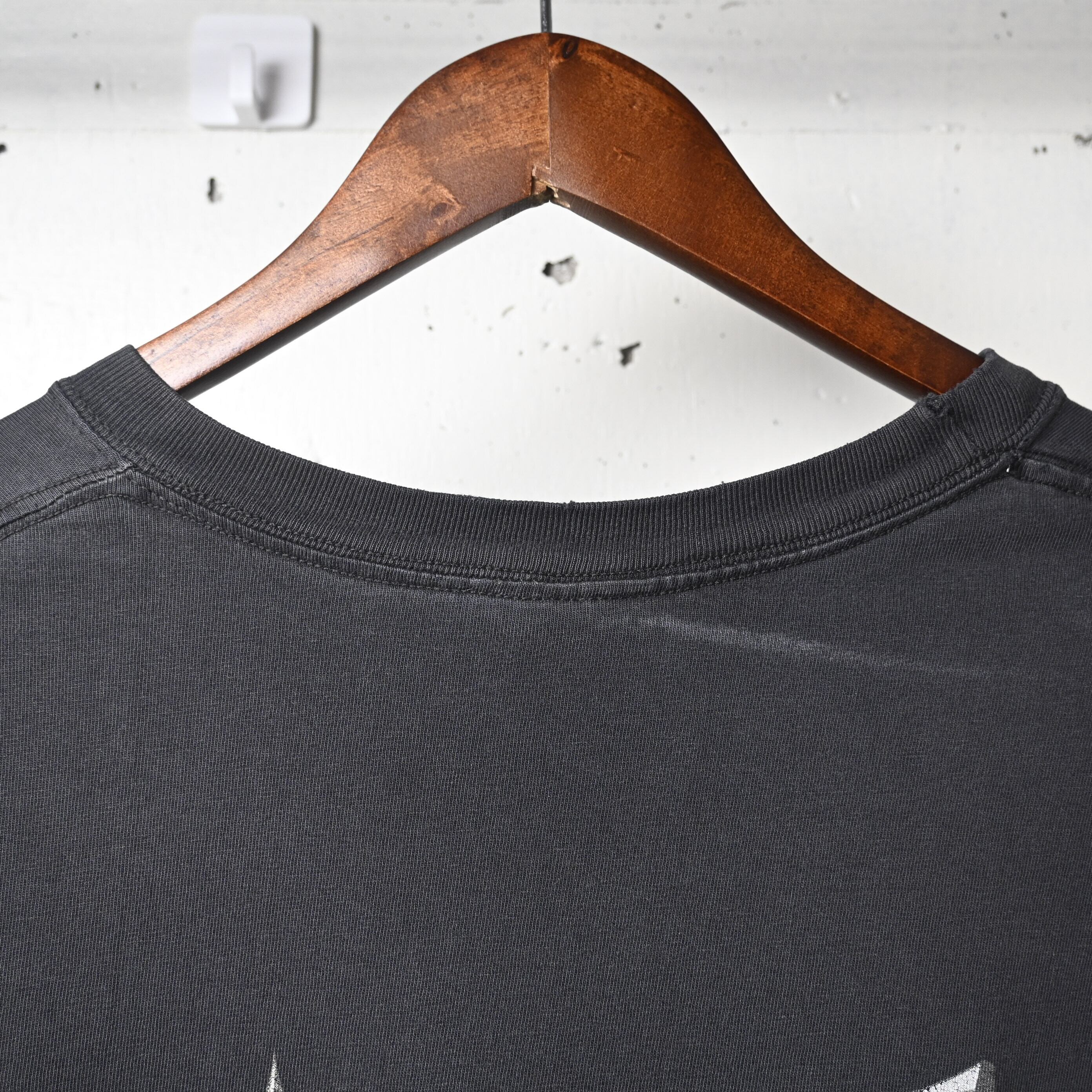 フェードしたブラックボディに、掠れたプリントが重なり、