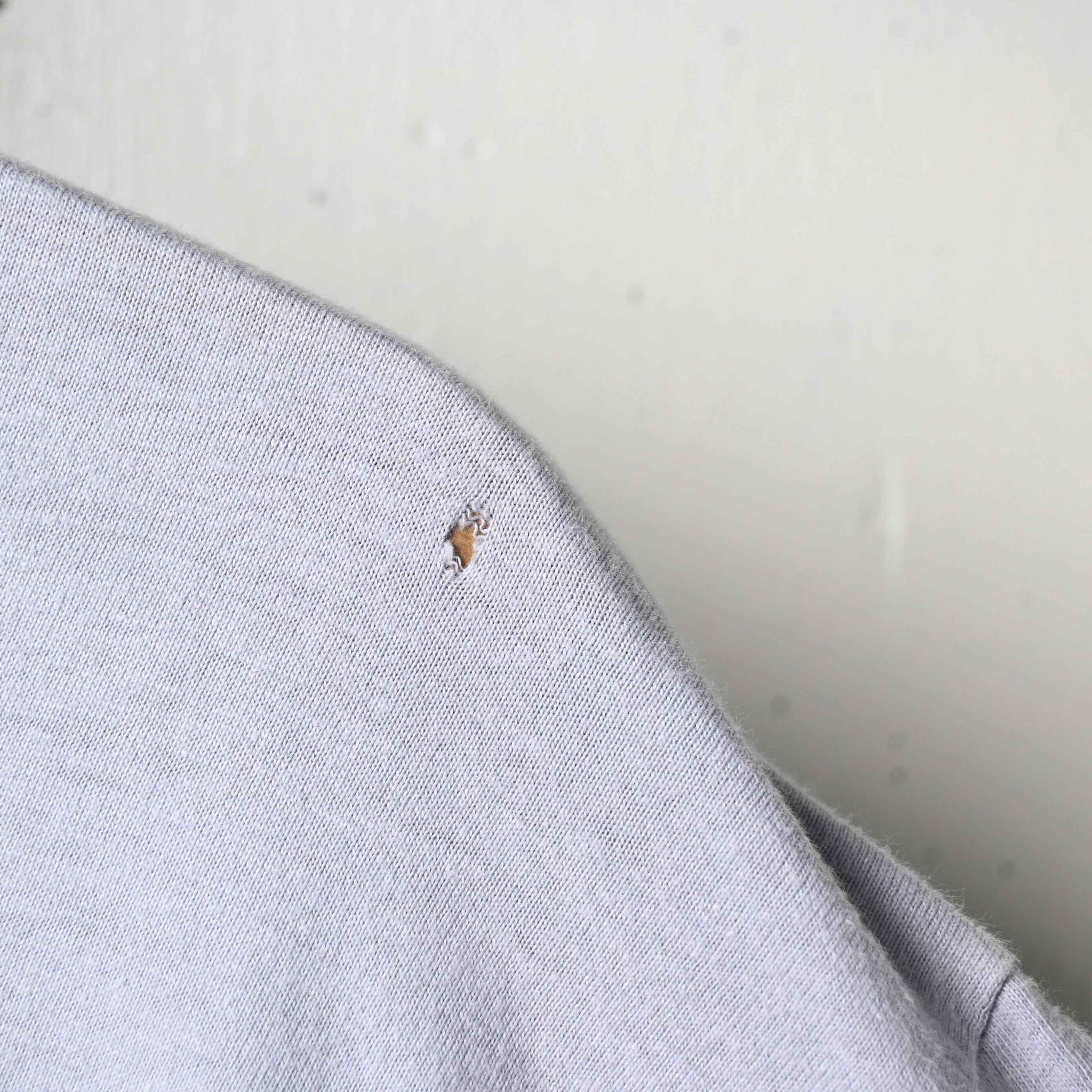 首元に若干のダメー、左肩に小穴があります。全体的に使用感が見られますが、ヴィンテージらしい風合いとしてお楽しみいただけるコンディションです。
