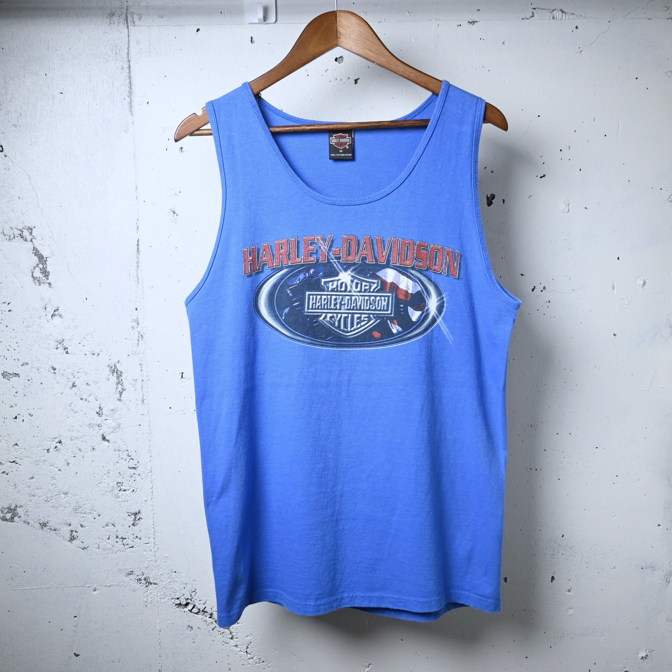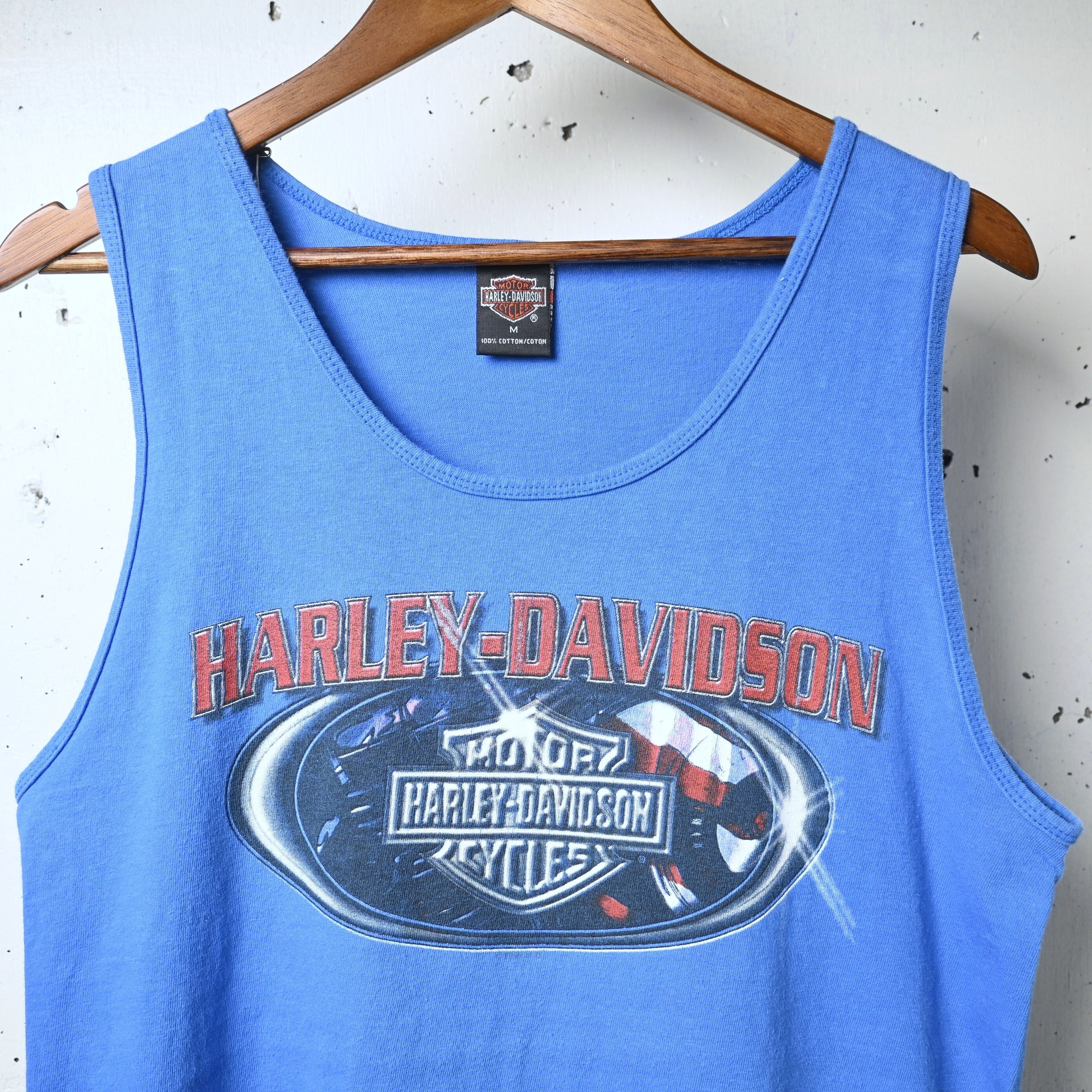 [ M ] HARLEY DAVIDSON 1998年 USA製 “BURLINGTON, WA” プリントタンクトップ ブルー