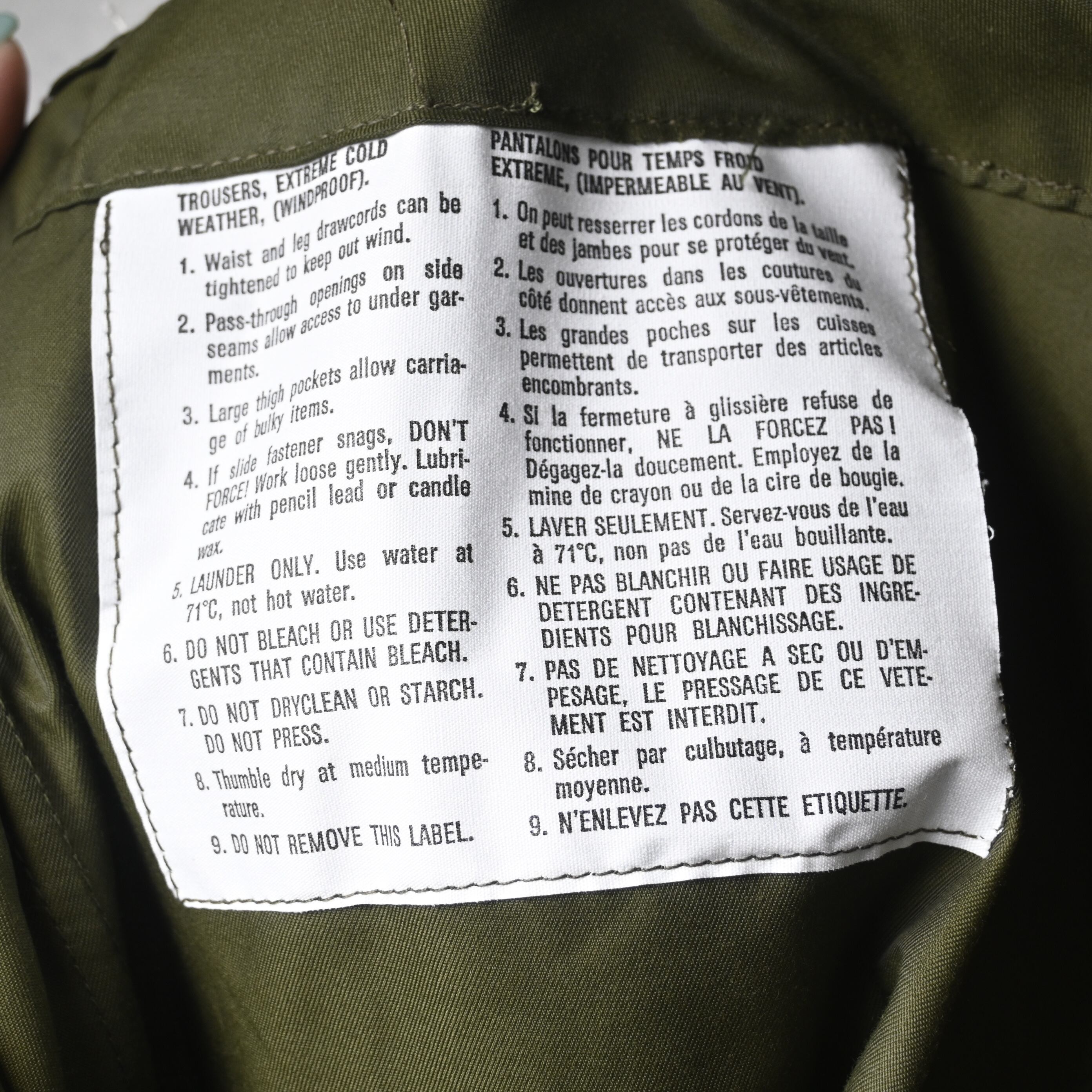 正式名称“Trouser, Extreme Cold Weather (Windproof)”の名の通り、
