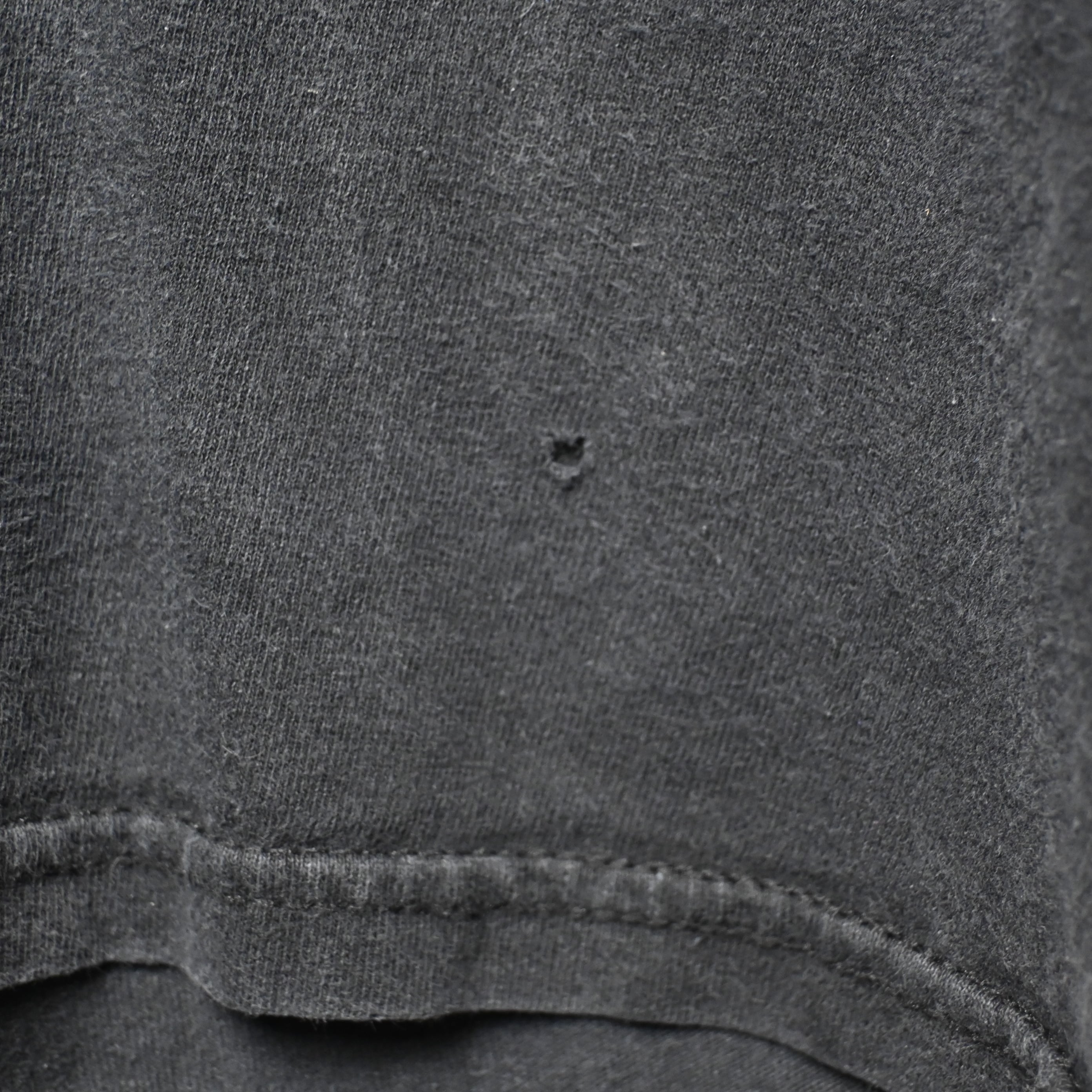 全体的にフェード(色落ち)、着用感あり。フロント下部、背中に小さなピンホールあり。