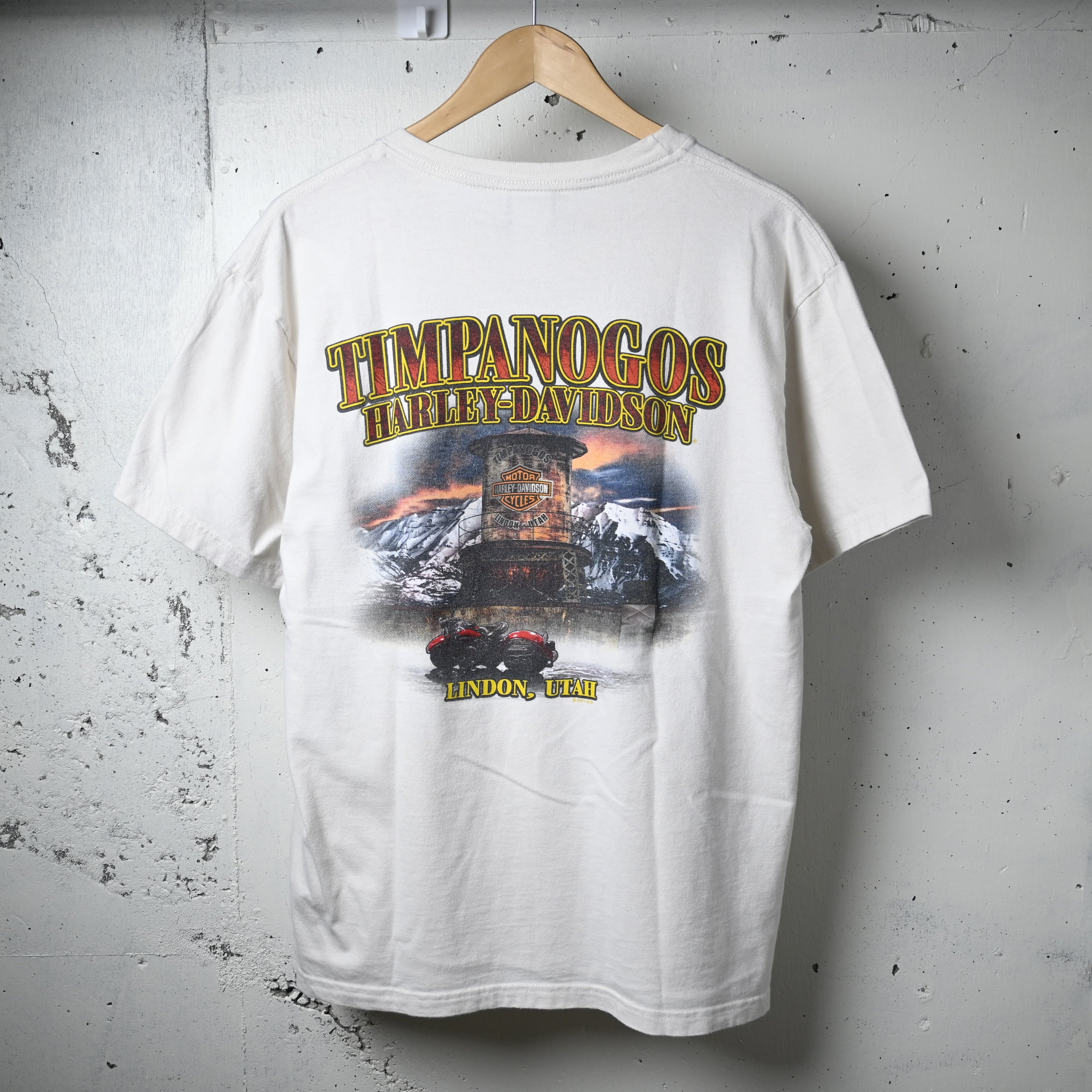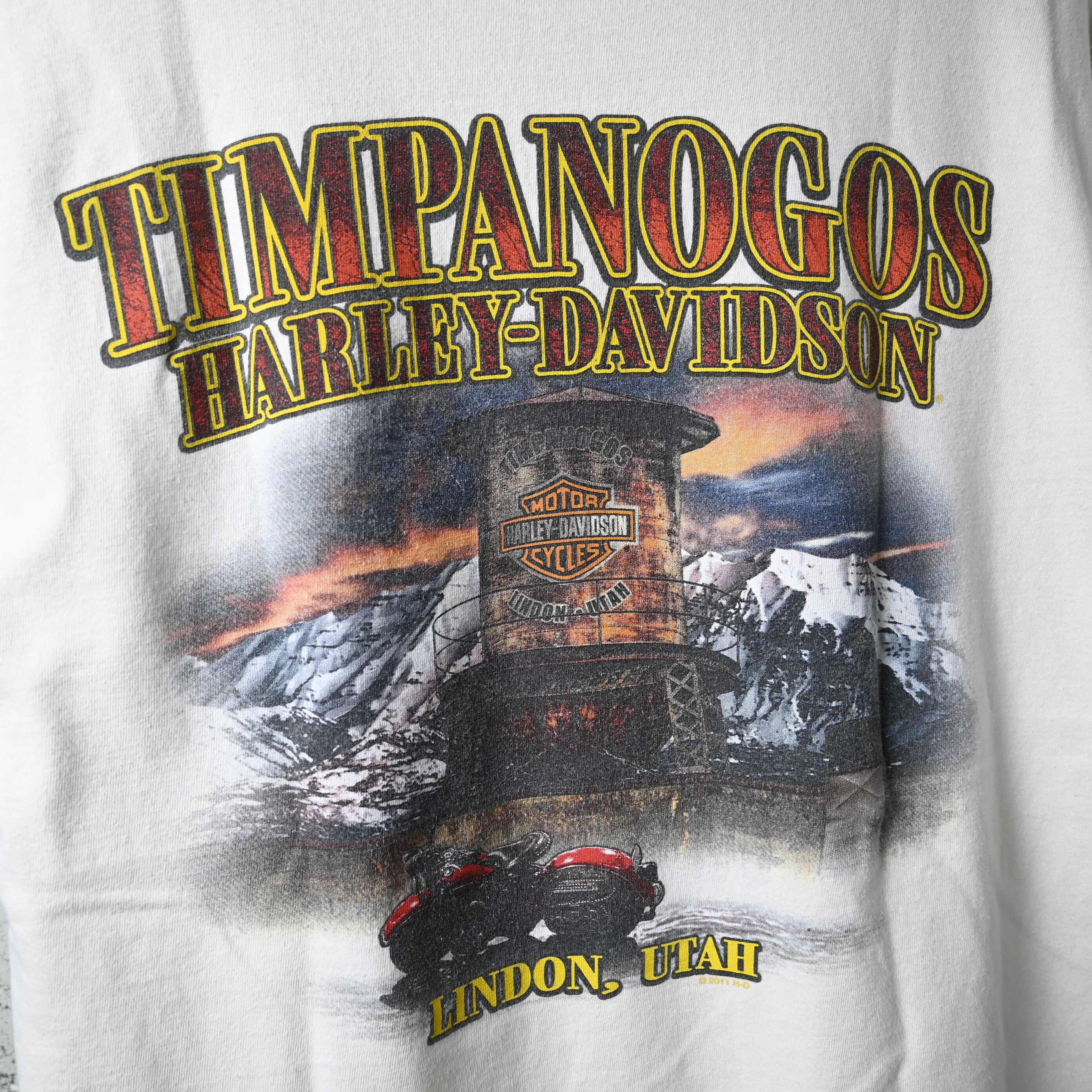 [ L ] HARLEY DAVIDSON (c)2011 USA製 "TIMPANOGOS" Print T-shirt , White