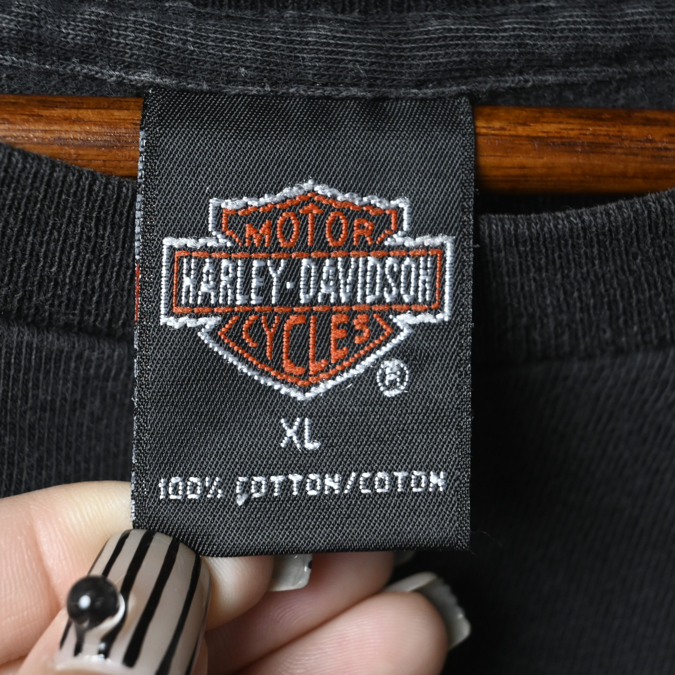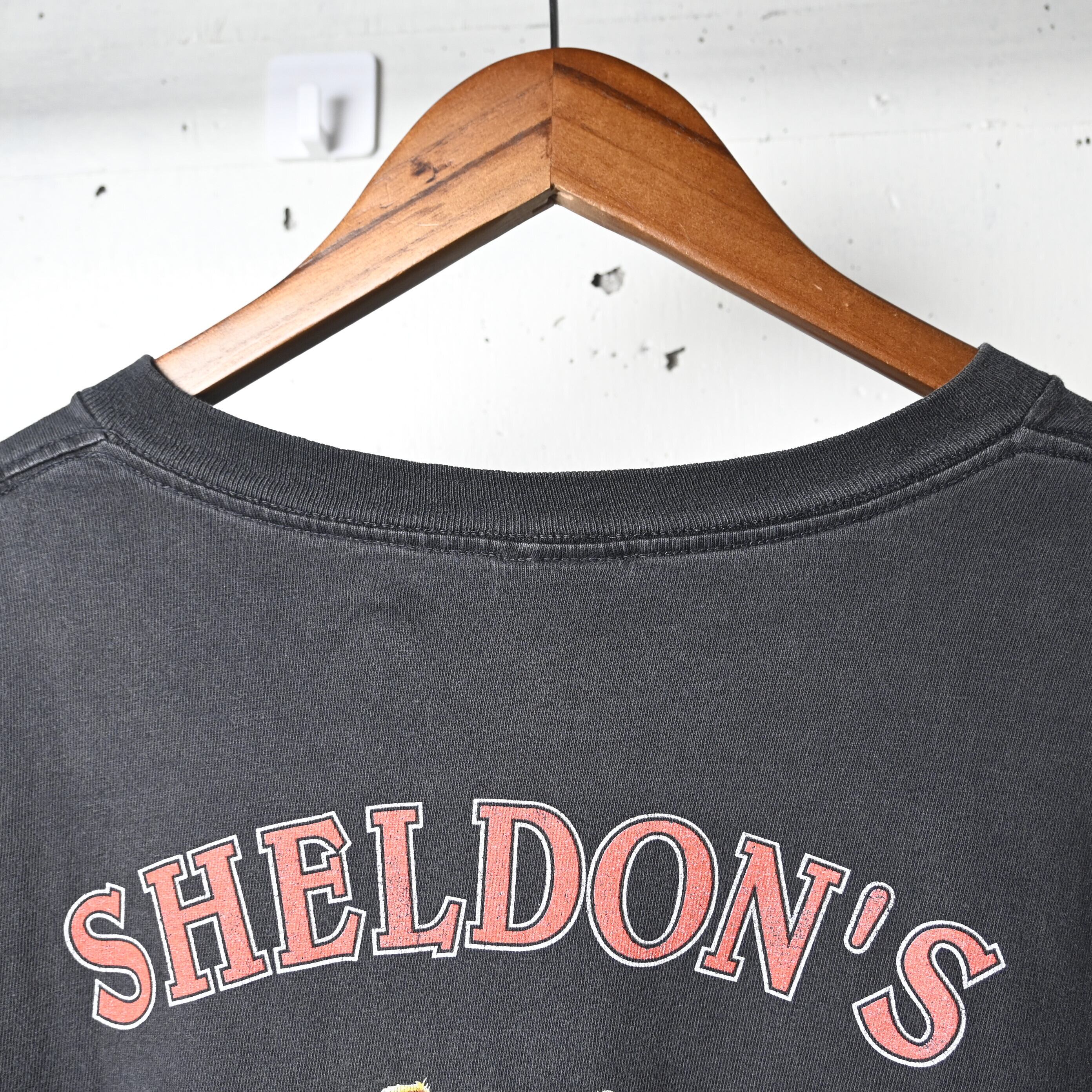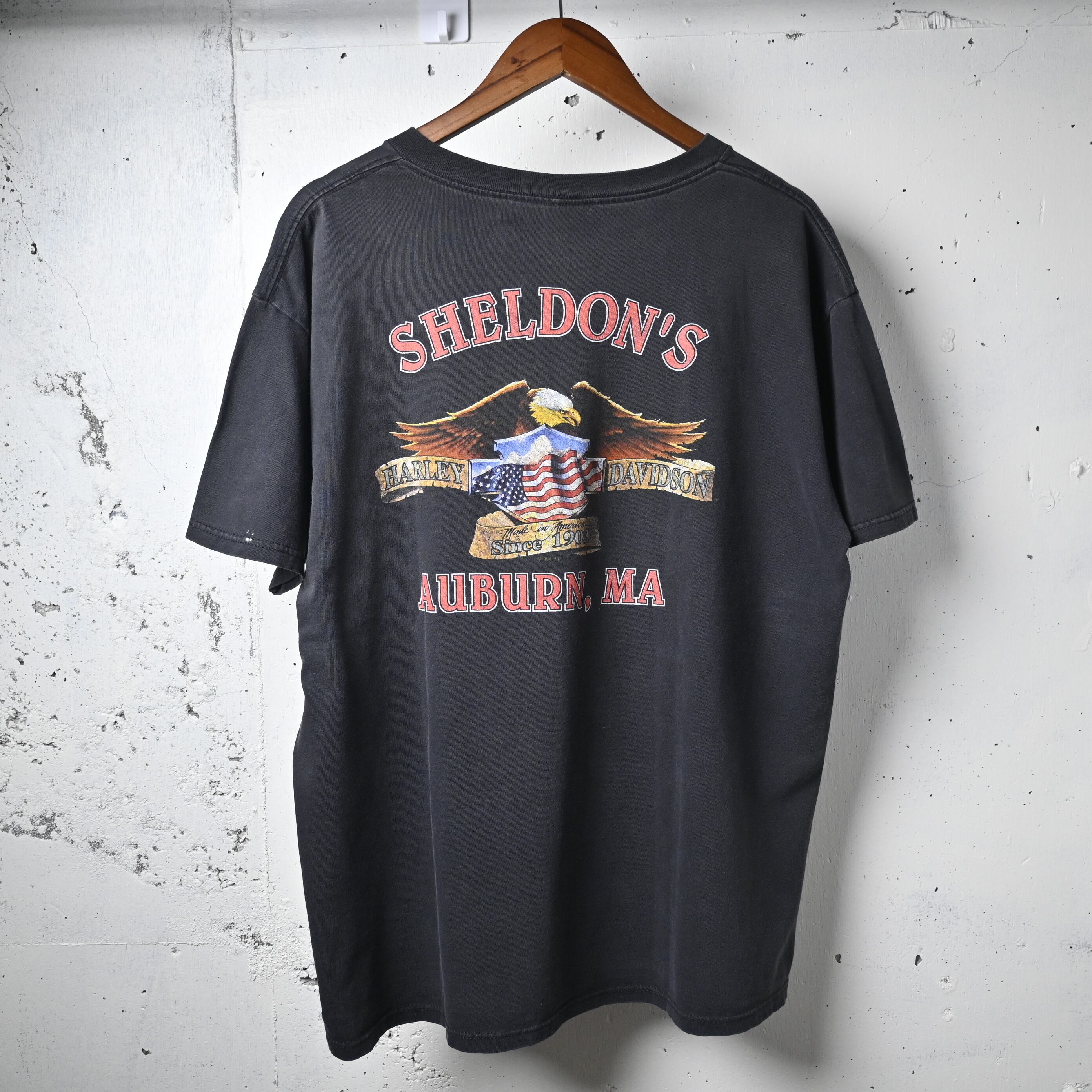 [ XL ] HARLEY DAVIDSON (c)1999 USA製 “SHELDON’S” プリントTシャツ ブラック