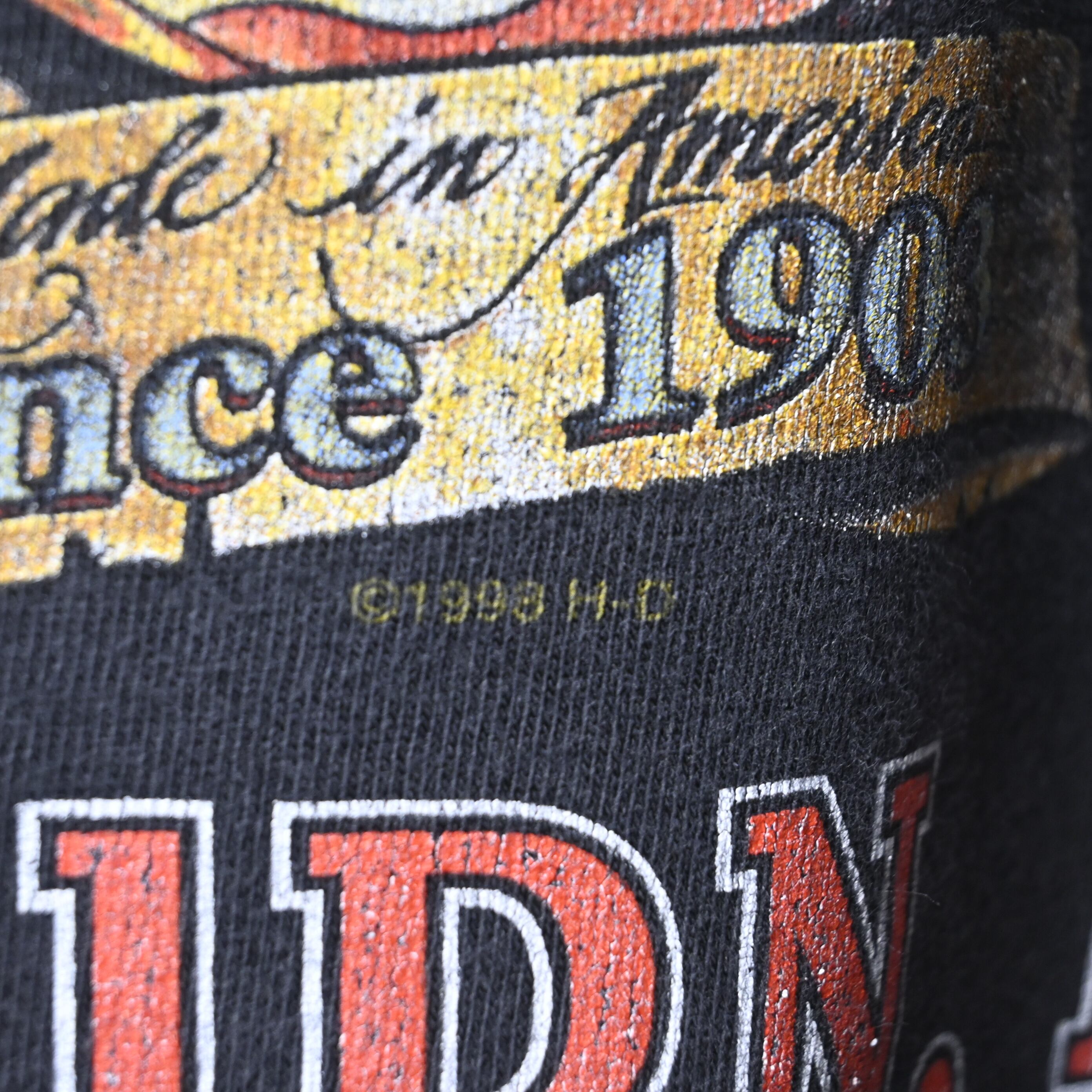 タグはHarley-Davidson純正タグのUSA製、コットン100%。この年代らしいしっかりとした生地感で、着込むことでさらに風合いが増していく一枚です。