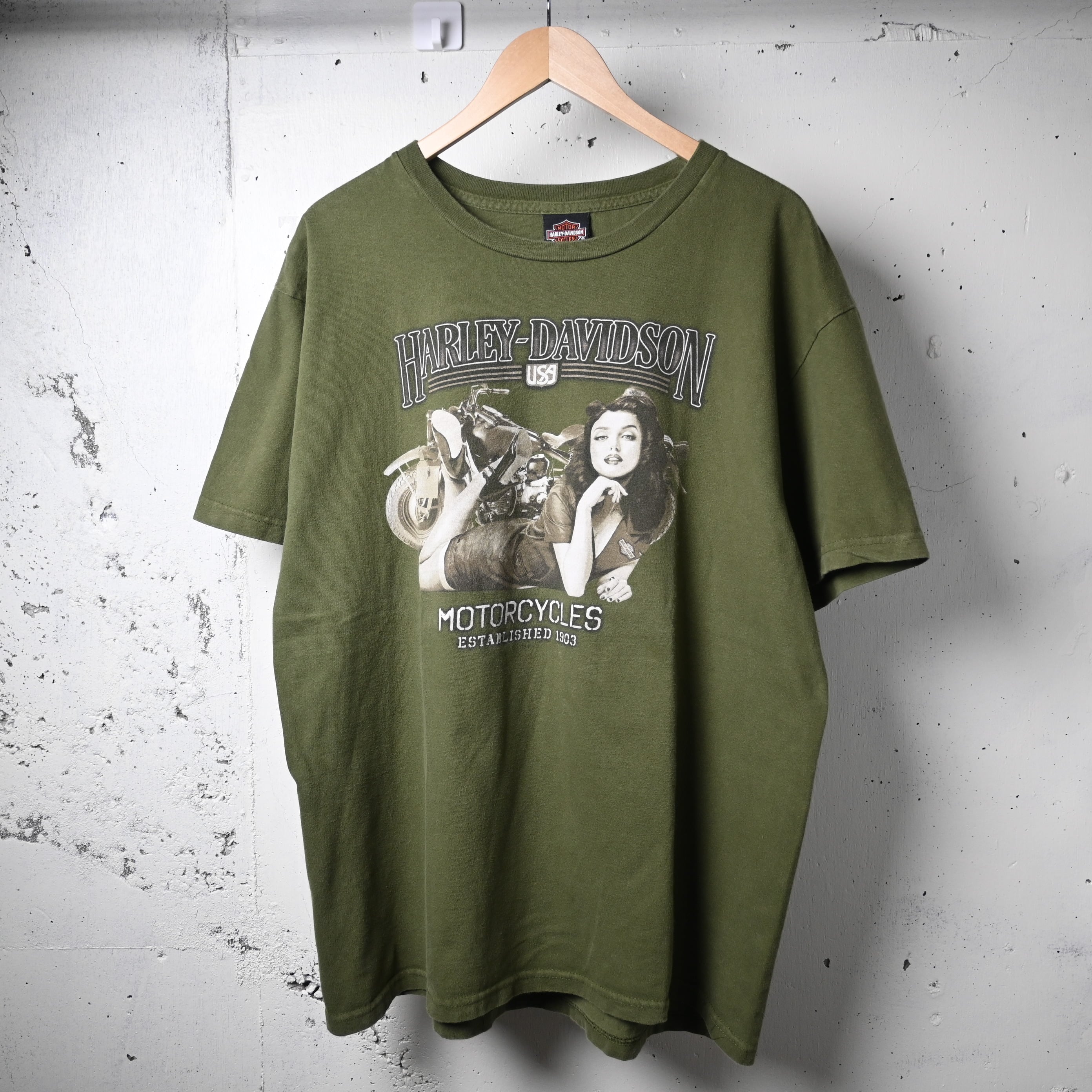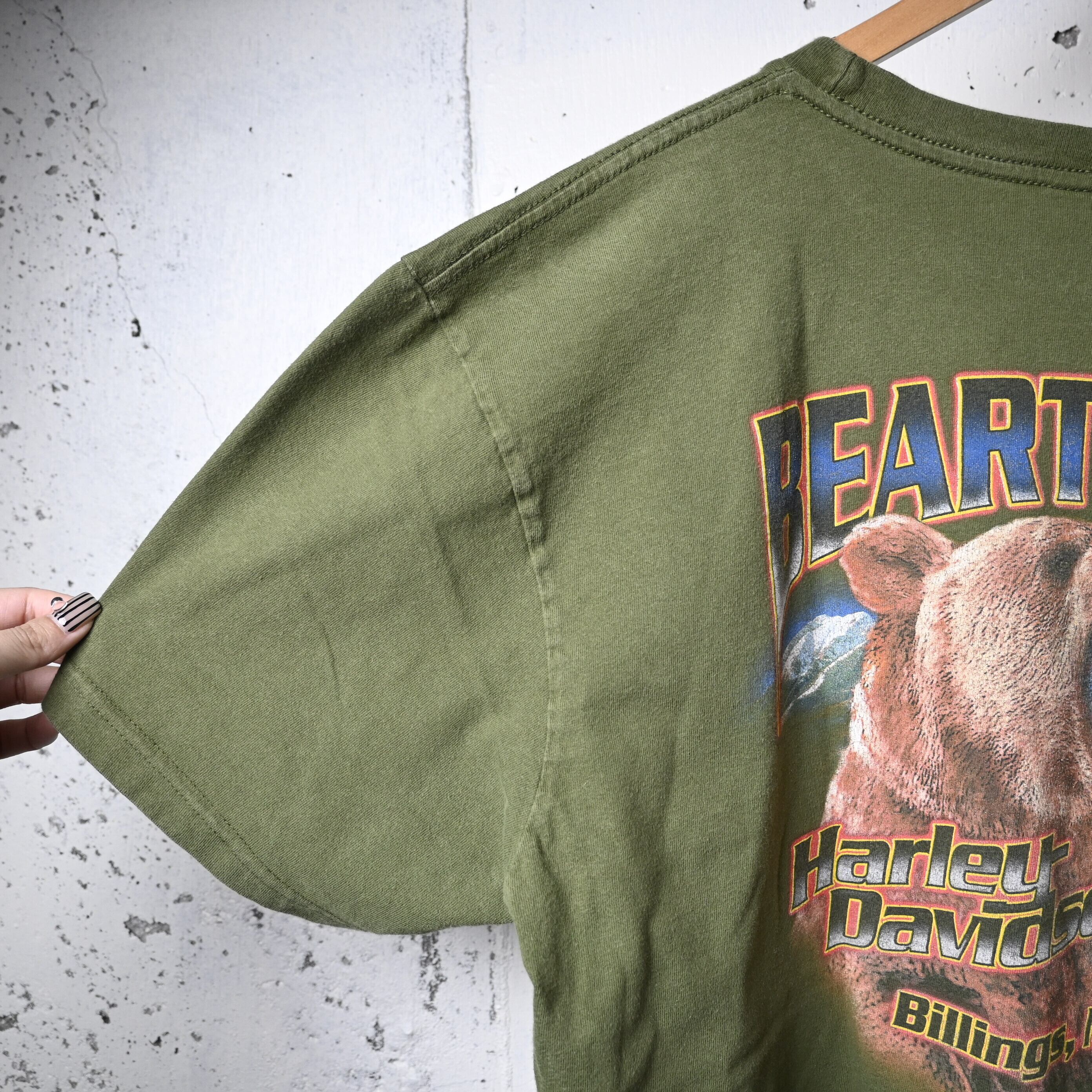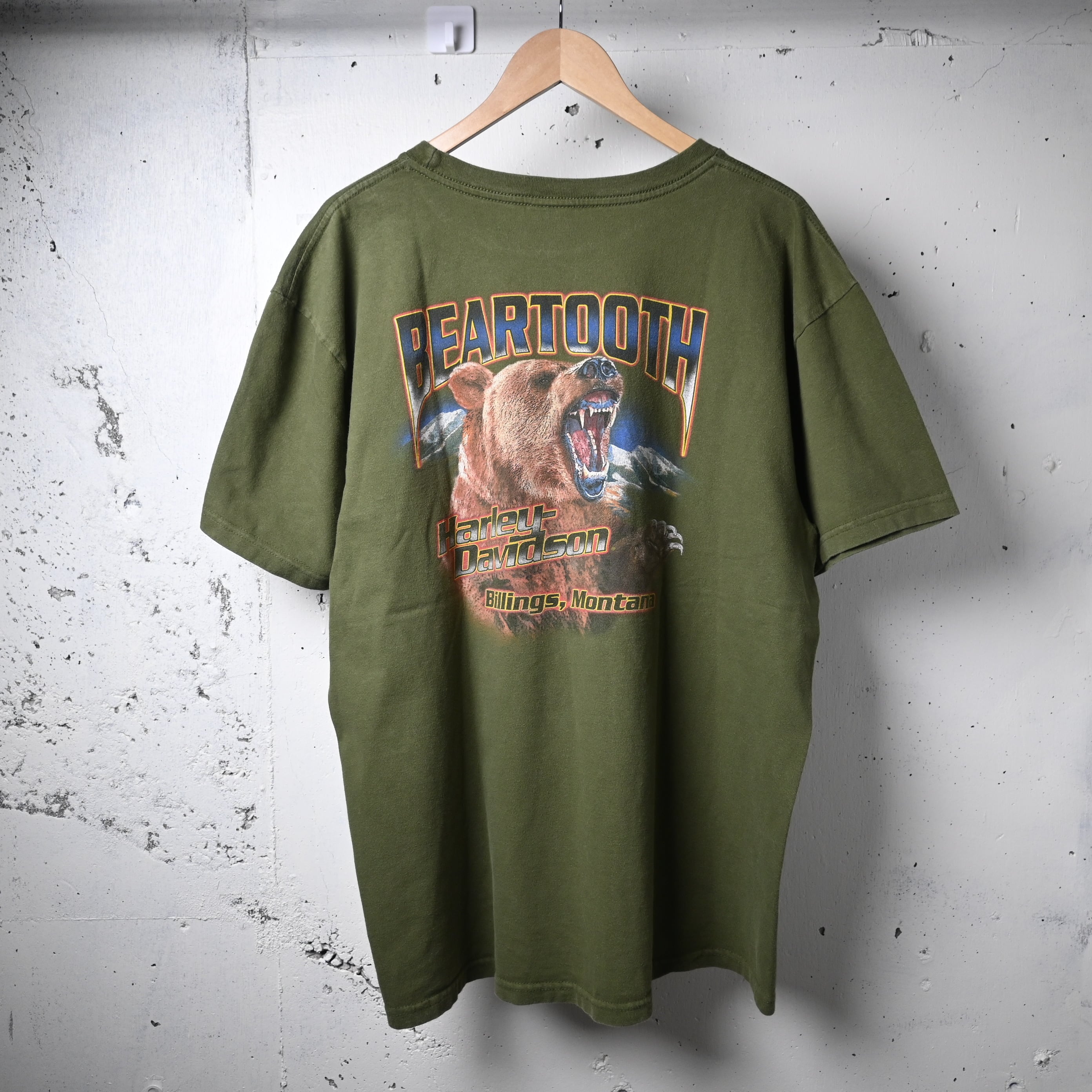 [ XL ] HARLEY-DAVIDSON USA製 "BEARTOOTH” プリントTシャツ , オリーブ
