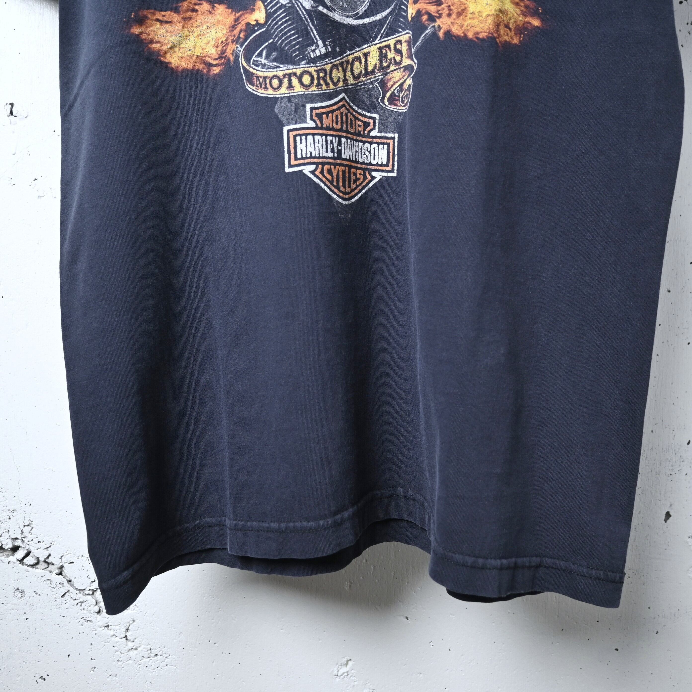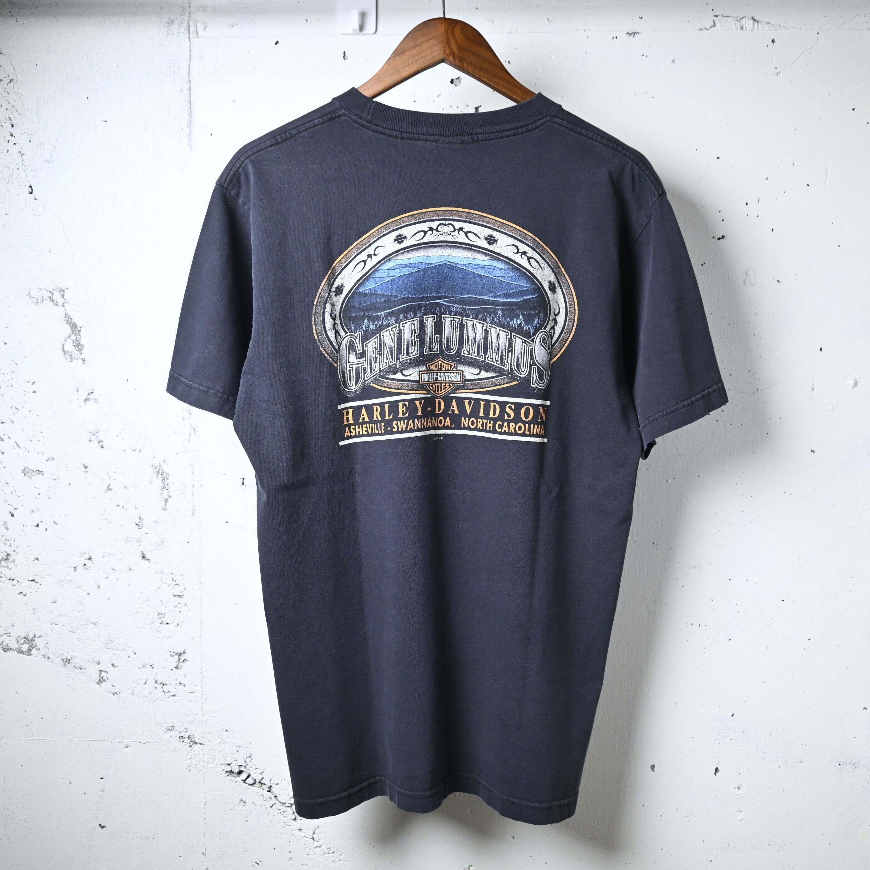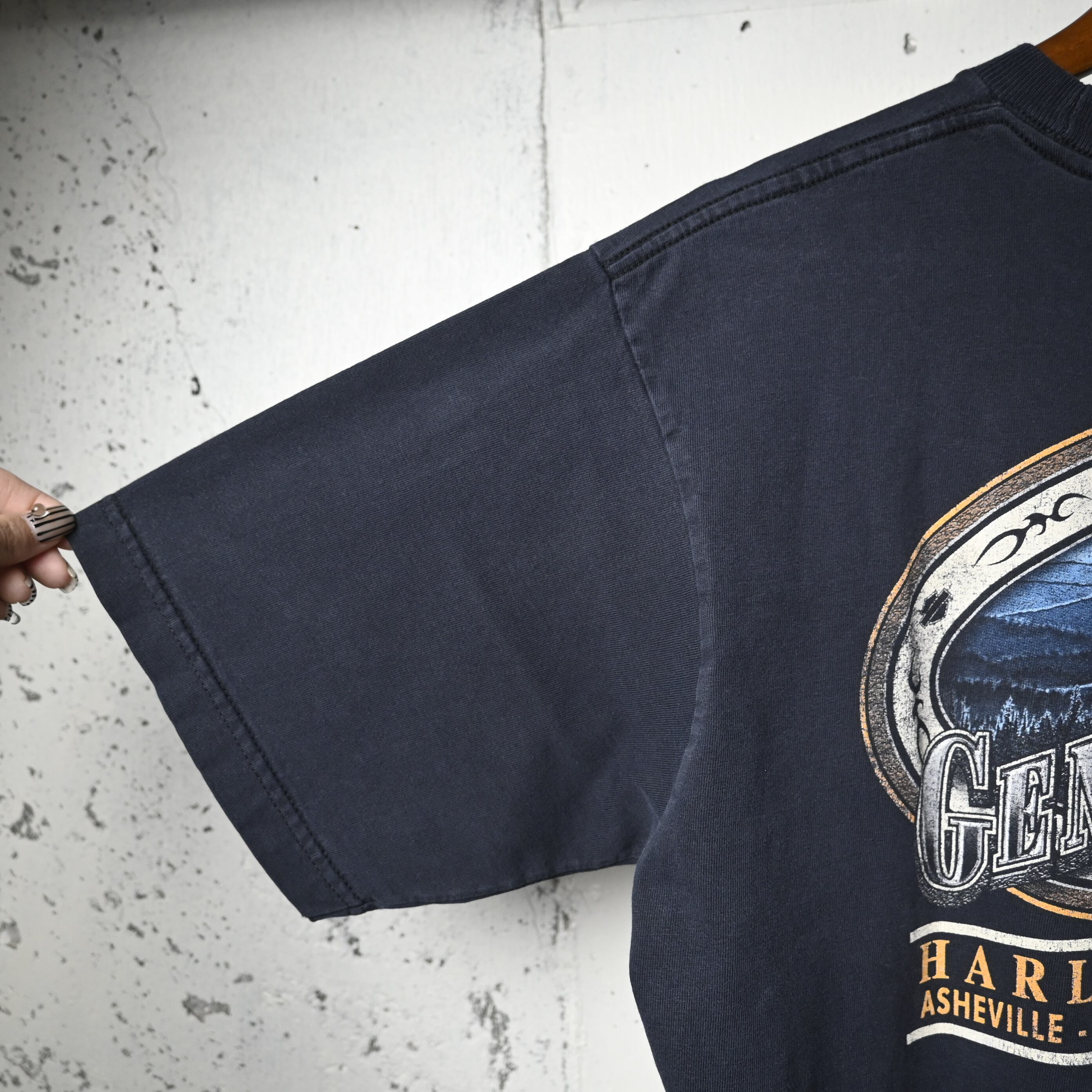 [ L ] HARLEY DAVIDSON (c)2004 USA製 "GENELUMMUS" Print T-shirt , Black