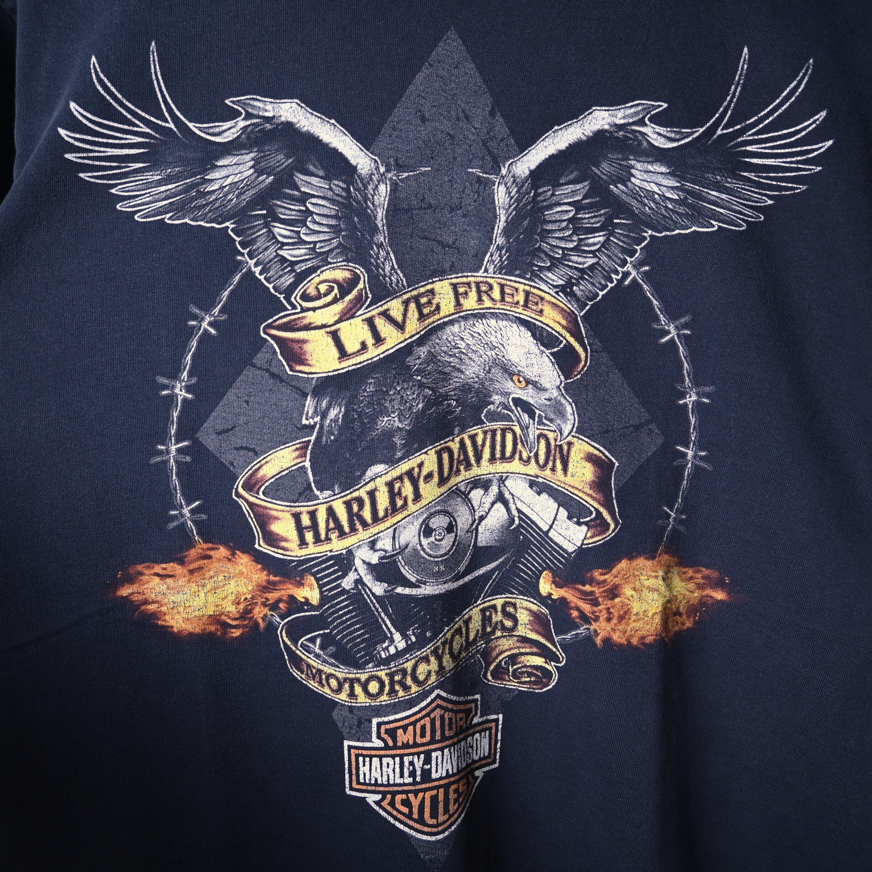 フロントにはイーグル×エンジン×フレイムの王道モチーフに“LIVE FREE”のメッセージが入り、ブランドらしい世界観をしっかり表現。