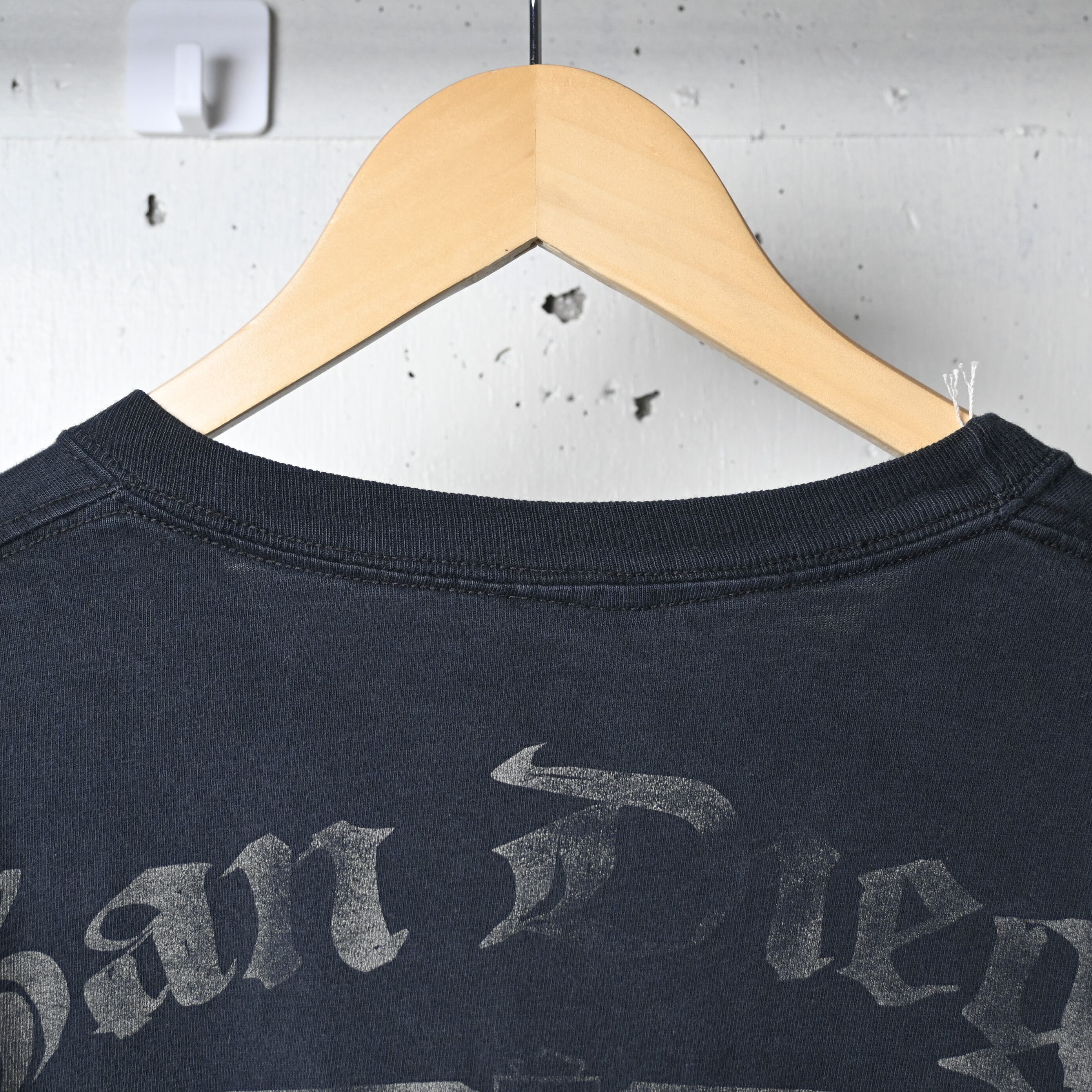 首元タグ欠損あり。全体的にフェード・プリントの擦れなど使用感が見られますが、雰囲気として楽しめるコンディションです。