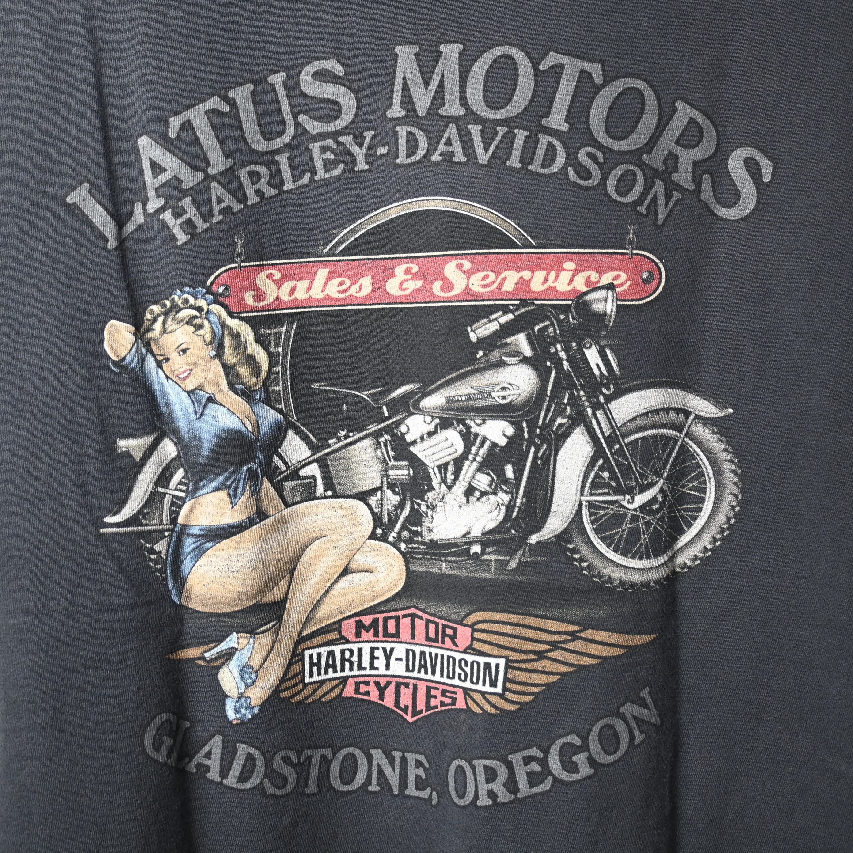 [ XL ] HARLEY-DAVIDSON USA製 "LATUS MOTORS” プリントTシャツ , ブラック